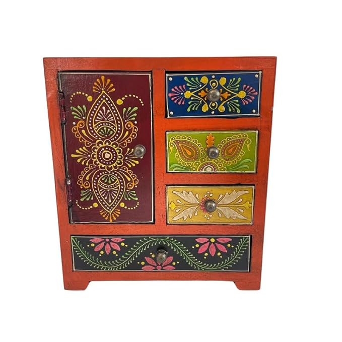 SACHIN ART Wooden vanity box, perfect for storing bangles and other cosmetic product. It comes with robust design, easy grip carry handle, faux creamy suede interior for a luxury finish and a number lock to keep your items safe and secure. A stunning vanity box crafted beautifully for professionals and perfect for home use. This gorgeous vanity box is made from high quality wooden which guarantees durability. The stylish handle also ensures easy transportation with its lightweight nature. not only complementing the hinges but provides ultimate security, for example when taking it away for the weekend, you know your anklet will be safe and secure. A must have for sorting bangles ,make up, beauty products, jewellery And More!