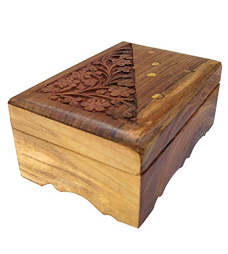 Protect and preserve your valuables with this handcrafted wooden jewelry box. You always want to keep your best valuables precious jewelry safely. This wooden jewelry box is ideal for organizing your jewellery collection. This classical wooden jewelry storage case has been built from real wood and polished gold hardware. A stylish way to keep your jewelry organized. This wooden jewelry box has a curved traditional design rich brown finish. Our handmade jewelry boxes make gifts for women and girls that can be treasured for a lifetime. Order the Indian Wood Jewelry Box today and delight her with something as special as she is! Great gift Ideas - Our jewelry boxes make great gifts for women and girls for all occasions.