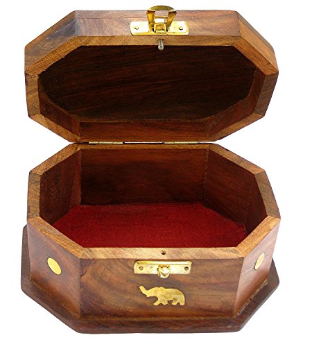 Handmade Wooden Jewellery Box for Women - Wooden Jewellery Storage Box - Jewellery Organisers Box - Storage Boxes for Jewellery - Wood Jewellery Holder Gifts Item Home Decor 6x4x4 inches Protect and preserve your valuables with this handcrafted wooden jewelry box. You always want to keep your best valuables precious jewelry safely. This wooden jewelry box is ideal for organizing your jewellery collection. This classical wooden jewelry storage case has been built from real wood and polished gold hardware. A stylish way to keep your jewelry organized. This wooden jewelry box has a curved traditional design rich brown finish.