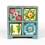 Rajasthani hand painted decorative 4 drawer wooden chest with ceramic drawers made in india by artisans using traditional ways designer touch with modern look elegent handmade product if this is looking old and used please do not place order.