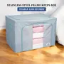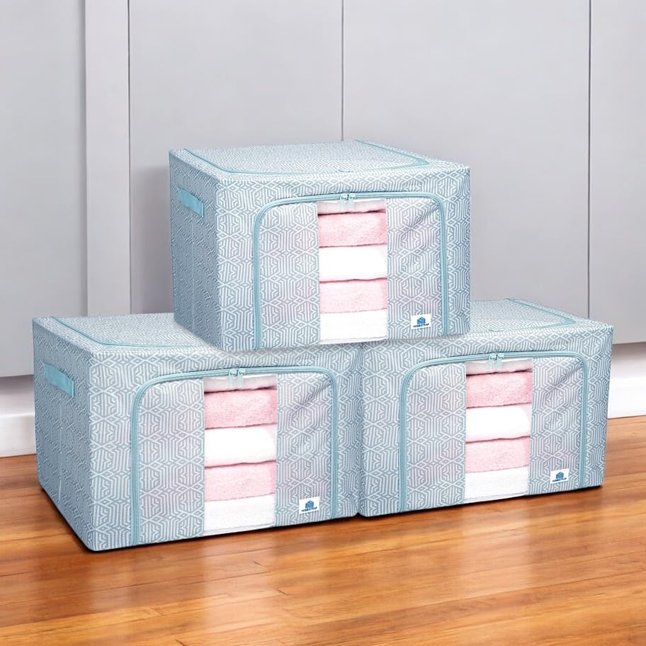 HomeStrap 66L Foldable Living Box | Spacious Organizer | Durable Oxford Fabric with Steel Frame Zipper & Handles | Perfect for Quilts Clothes Books Bedding (Pack of 3)