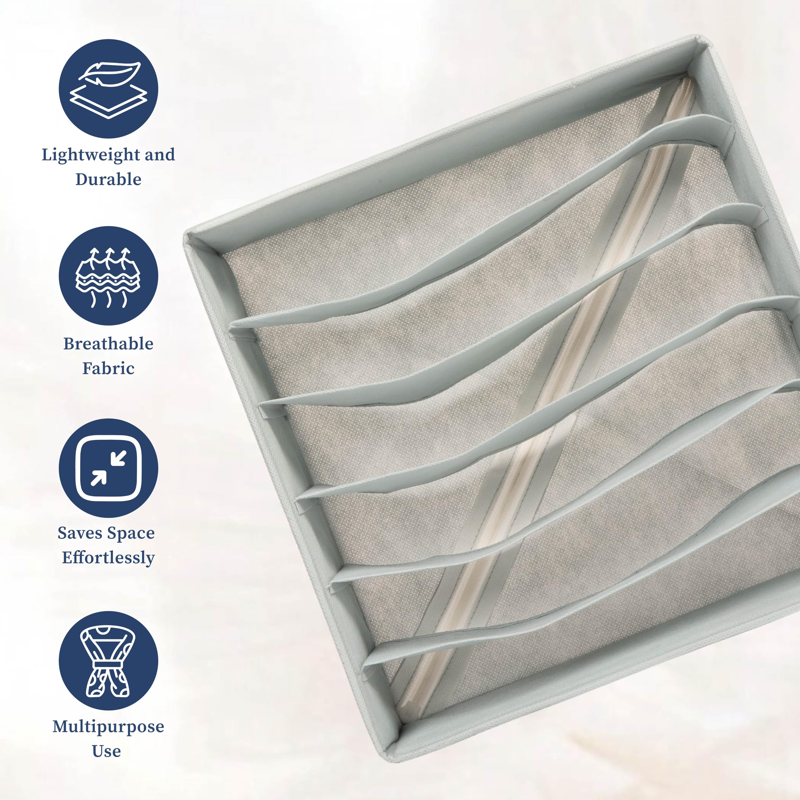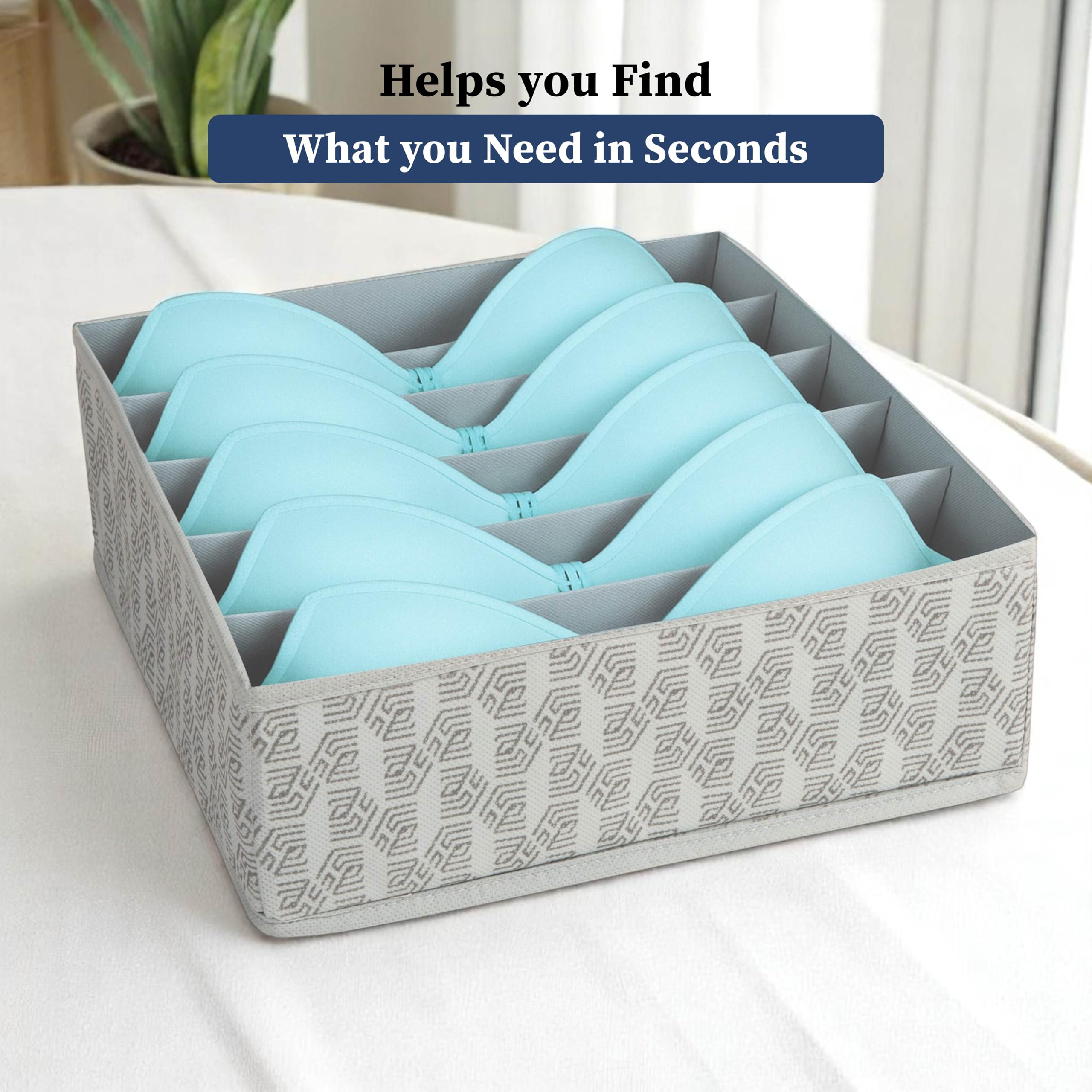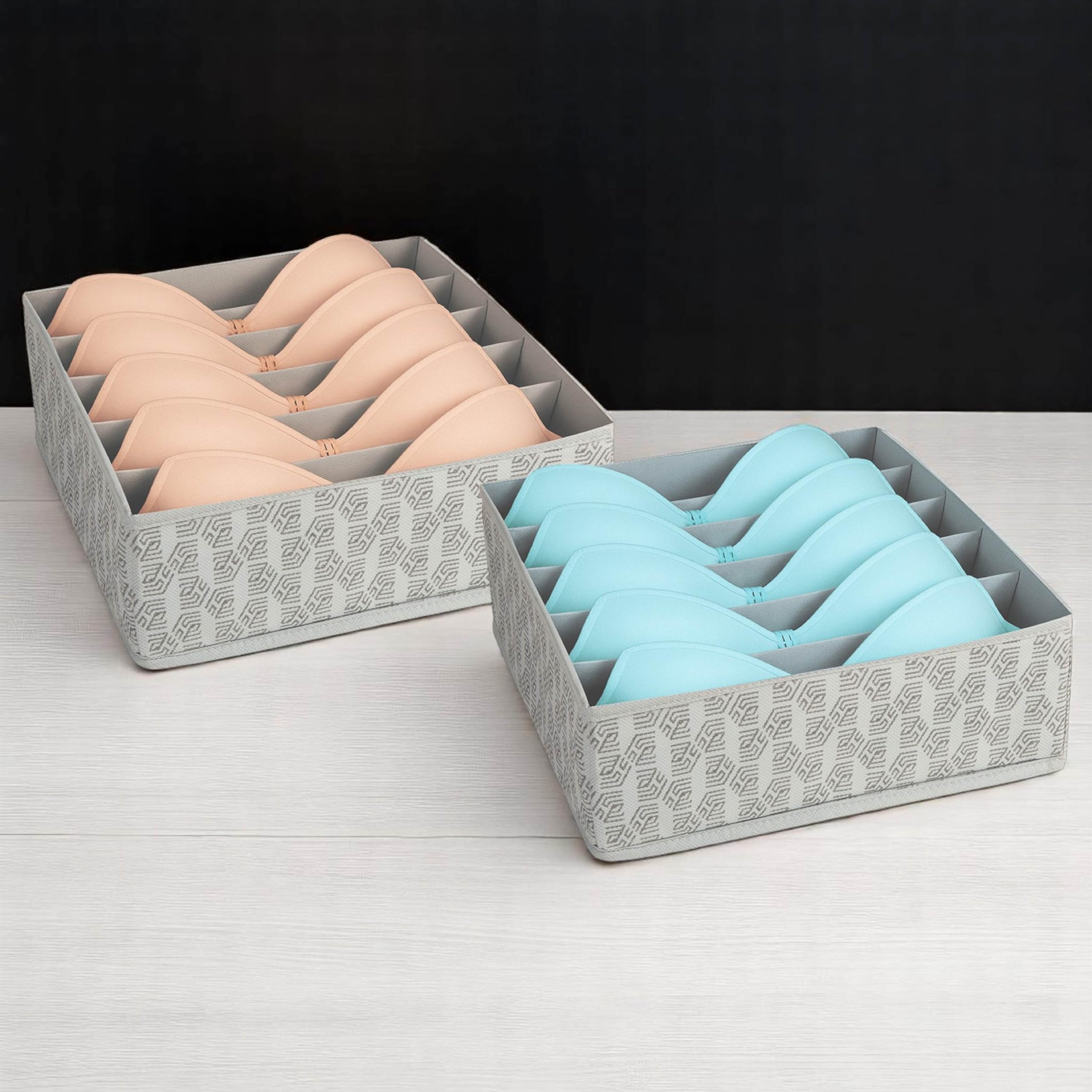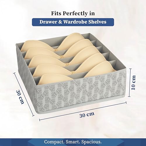 Organize your wardrobe and drawers with the Homestrap Bra Organizer a must-have for anyone who is tired of tangled undergarments and crushed cups. Made from breathable non-woven fabric this foldable bra storage box is ideal for padded bras lingerie and other delicates. Its rigid hardboard frame keeps the organizer upright and helps maintain the shape of bras making it perfect as a lingerie storage box. Designed to fit standard wardrobes and drawers the 6-slot layout helps keep items neatly separated and accessible. With a bottom zipper design this undergarment organizer for drawers folds flat when not in use â giving you flexibility and saving space. Whether you use it as a drawer divider or closet organizer it adapts to your needs. Ideal for organizing: Bras Lingerie Underwear Scarves & tops Lightweight essentials Trusted by over 4 million+ users Homestrap combines thoughtful design and practical features to keep your space clean and functional.