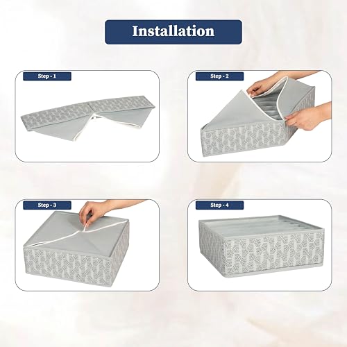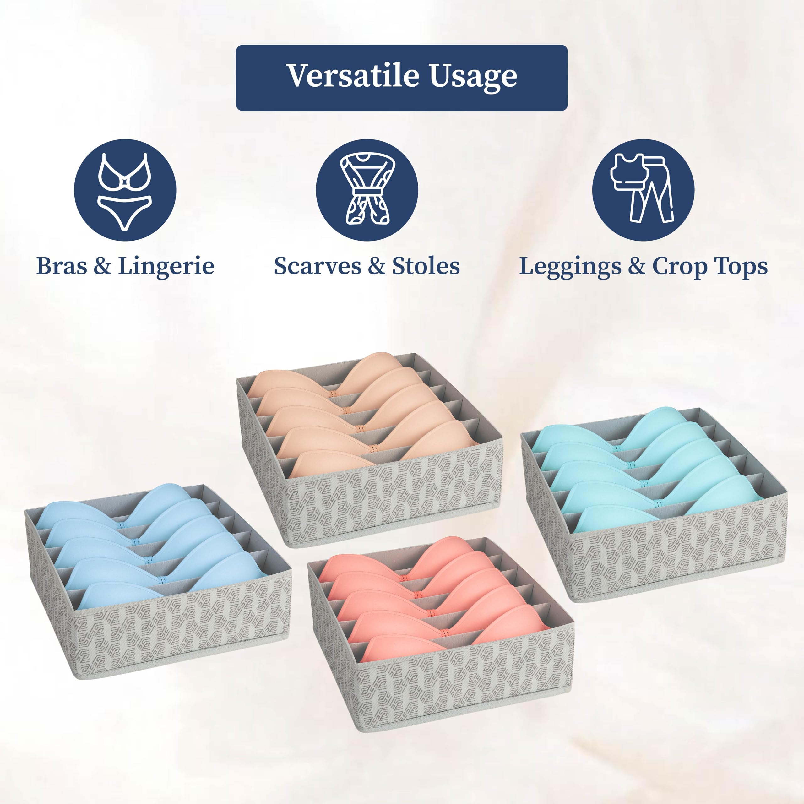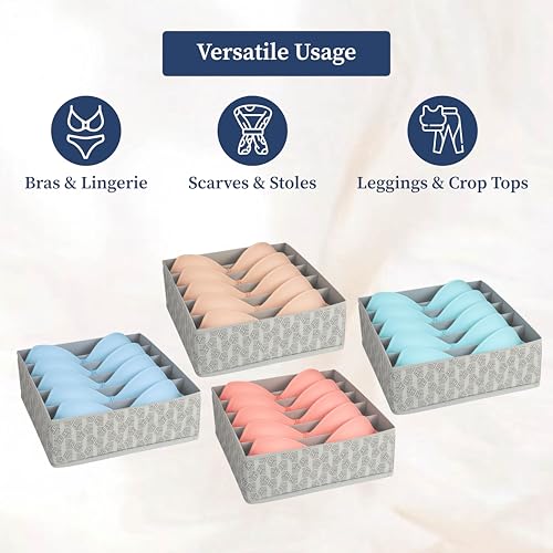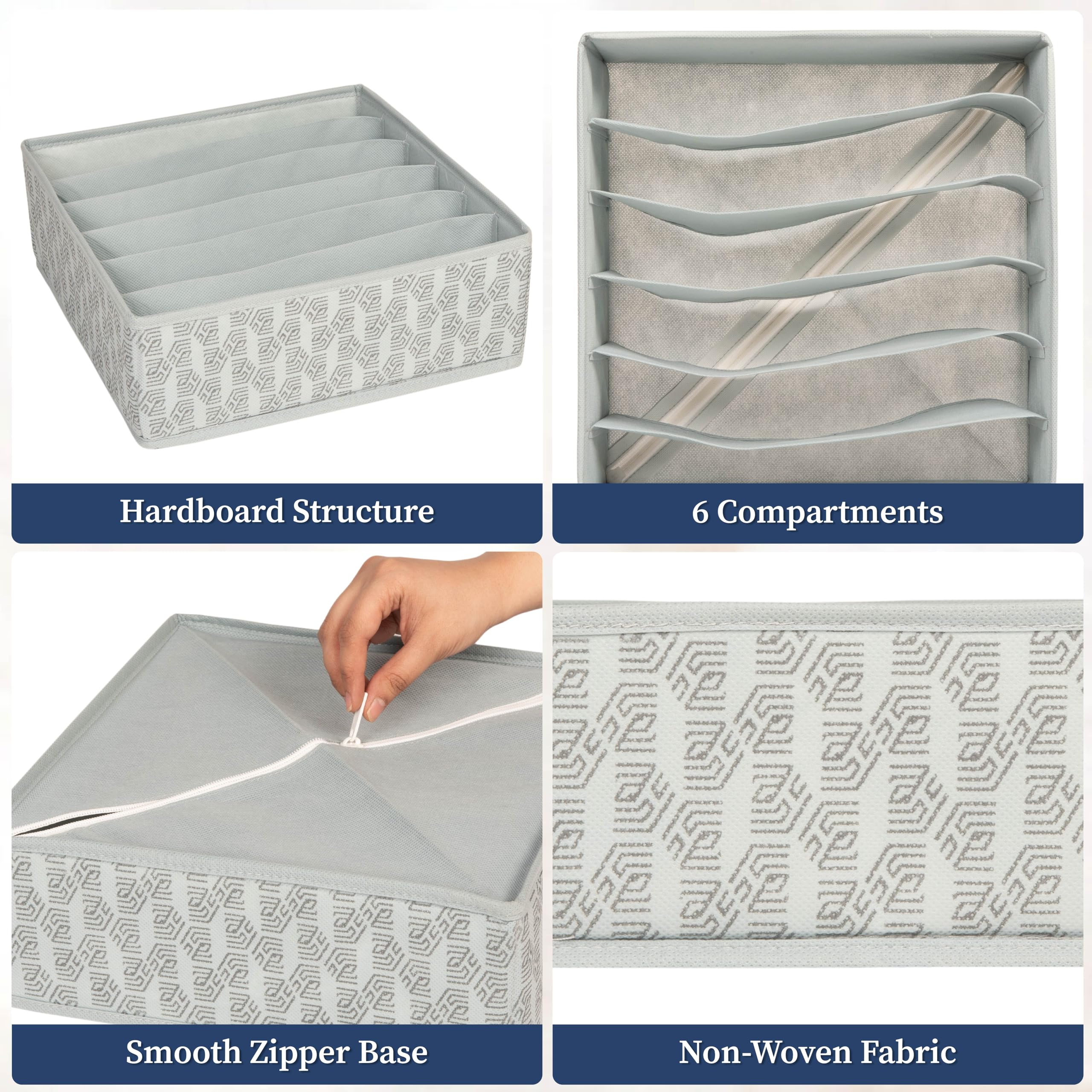 Organize your wardrobe and drawers with the Homestrap Bra Organizer a must-have for anyone who is tired of tangled undergarments and crushed cups. Made from breathable non-woven fabric this foldable bra storage box is ideal for padded bras lingerie and other delicates. Its rigid hardboard frame keeps the organizer upright and helps maintain the shape of bras making it perfect as a lingerie storage box. Designed to fit standard wardrobes and drawers the 6-slot layout helps keep items neatly separated and accessible. With a bottom zipper design this undergarment organizer for drawers folds flat when not in use â giving you flexibility and saving space. Whether you use it as a drawer divider or closet organizer it adapts to your needs. Ideal for organizing: Bras Lingerie Underwear Scarves & tops Lightweight essentials Trusted by over 4 million+ users Homestrap combines thoughtful design and practical features to keep your space clean and functional.
