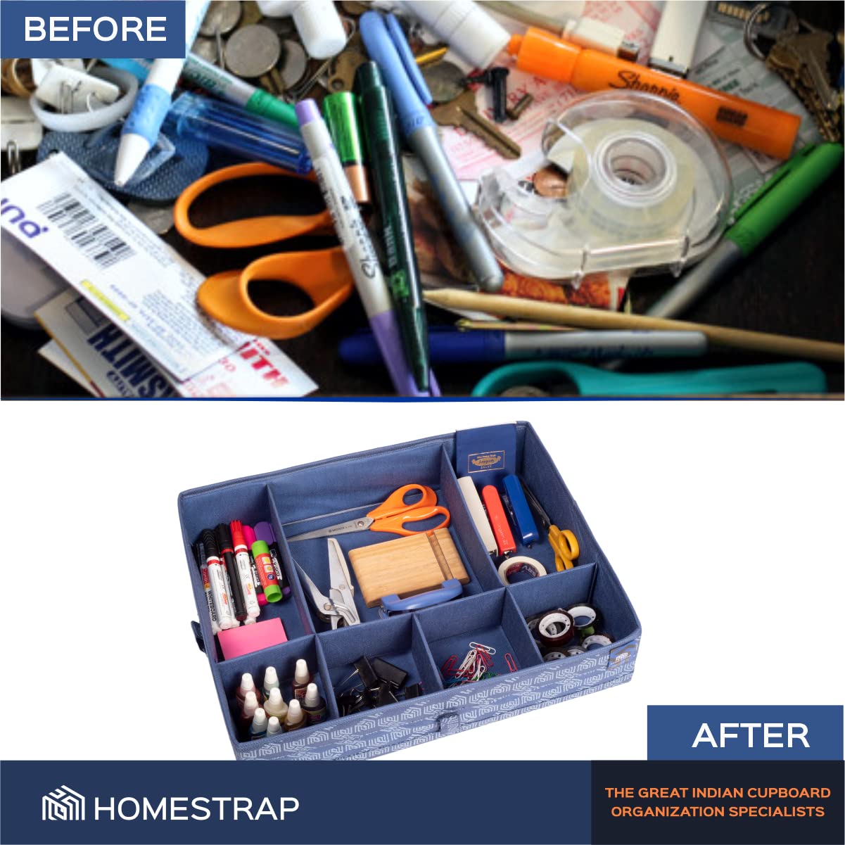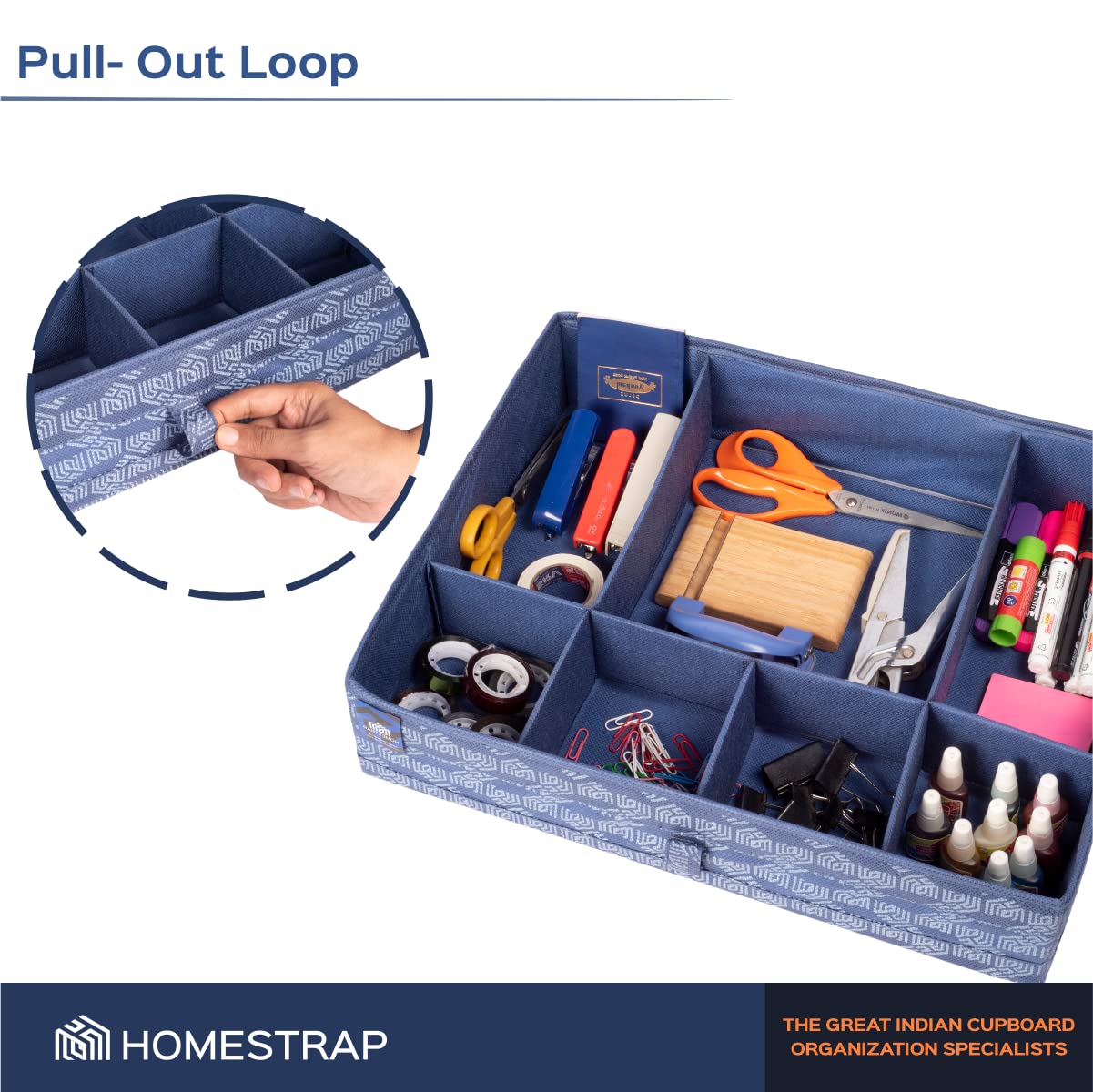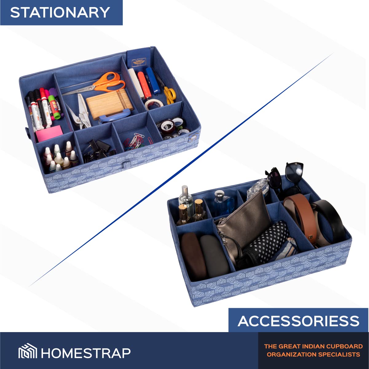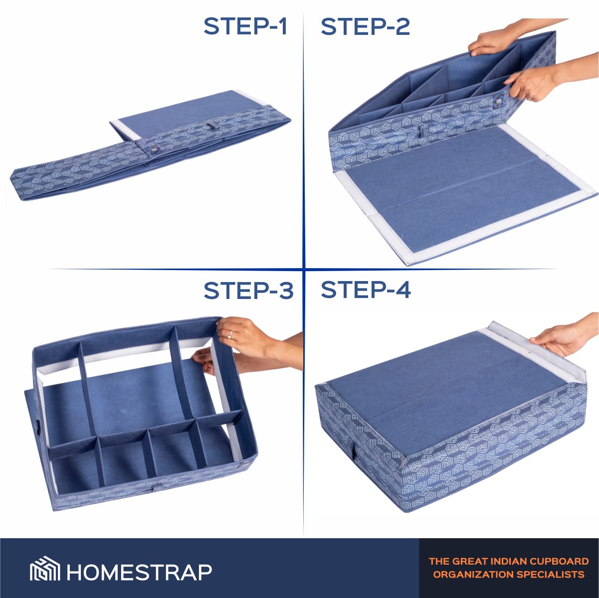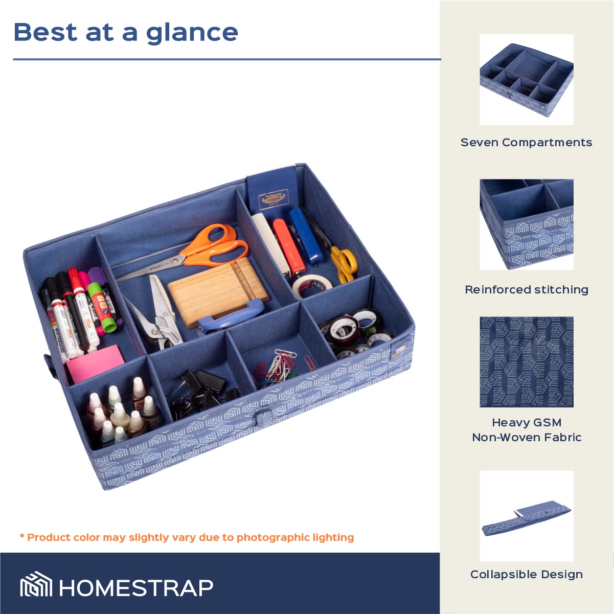 Homestrap Multipurpose Foldable Premium Storage Box/Drawer Organizer With 7 Compartments (Navy Blue)
