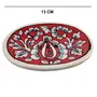 KHURJA POTTERY Bathroom Accessories Set with Soap Dish Liquid Soap Dispenser and Toothbrush Holder Khurja Pottery Decorated Floral Design (Red)