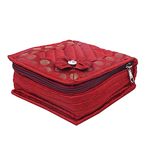 Jewellery box in heavy cotton material. 4 Pockets are there in box with 1 extra Zipper. This is an exclusive item in which you can keep all jewellery. Kuber industries brings products for every woman who dreams of being unique and stylish. It offers incredible range of handbags and jewellery boxes for women. Their products are incomparable in terms of quality.