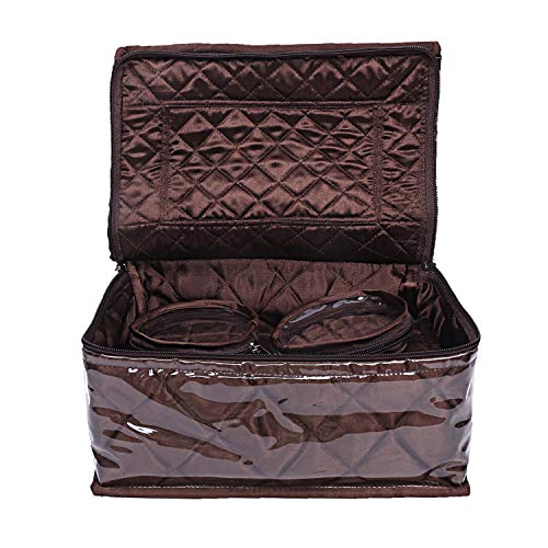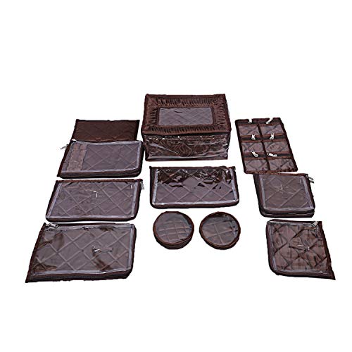 Kuber Industries Laminated Satin Locker Jewellery Kit (Brown), 12 Pouches -CTKTC25665