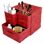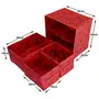 Kuber Industries Metallic Flower Printed 3 Drawers Foldable Non-Woven Dressing/Jewllery/Makeup Organizer Box- Pack of 2 (Red)-HS43KUBMART26850