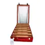 Horrible quality with plastic cover on top with full scatches and holders moulded in very light cardboard. Barring the red color velvet cloth, nothing is worth the price ??
