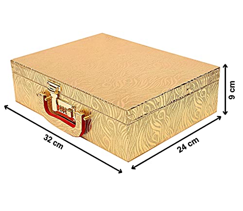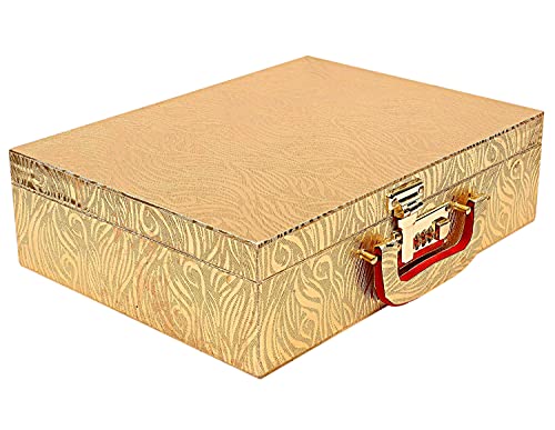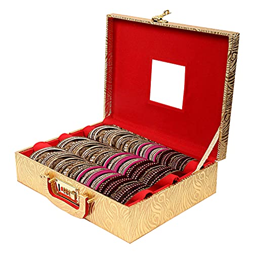 Kuber Industries Bangle box is made of good quality wooden and paperboard material so this is very durable long-lasting and very useful. This has an attractive and elegant look and has coated Soft leather with Gold color which increases the beauty of this bangle box. This is used to organize your bangles systematically and protect them from breakage so keep delicate your bangles safely. Keeps delicate bangle safe and dust free a perfect gift durable. It's a best option to use while travelling and in home it will help you to keep your heavy bangles in a separate cover from other items in your luggage lock. Now organize your bangles systematically and protect them from breakage. Ideal Choice For: wooden bangle storage box Bracelet Box Bangle Box Bangle case Vintage Vanity Box Bridal Wedding Box Gift (Shagun) Box Wrist Watch Box kit Organizer makeup earring box etc.