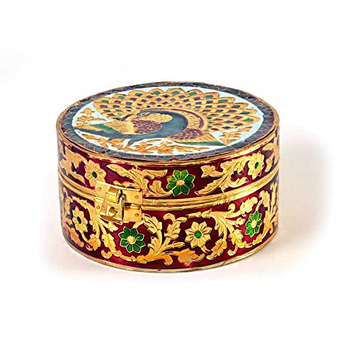 Little India Meenakari Art Work White Metal Round Dryfruit Box (291 Gold)