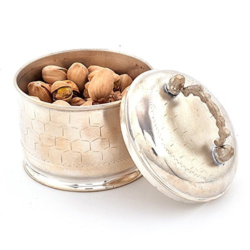 This handcrafted silver polished mouth freshener box is made of pure brass. There is a lid to keep it closed after use.made up of pure brass the box exhibits luxurious texture and has a beautiful carved handle on upper side of the lid which gives it a royal touch and finish.