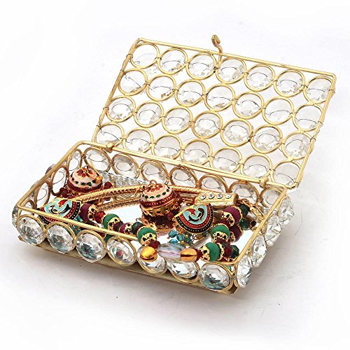 The beautiful handcrafted box is made up of brass and is decorated with crystal all over. Its is a multi utility item which can be used to keep your little thing like cards jewellery or any other item. The gift piece has been prepared by the master artisans of jaipur.