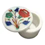 MARBLE INLAY ART AGRA - PACCHIKARI Handcrafted Marble Box with inlay Work Perfect for Ring/Earring and Gifts. Size - 2 x 2 inch Round.
