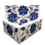MARBLE INLAY ART AGRA - PACCHIKARI Handcrafted Rectangular White Marble Box is made from Single piece of marble and produce by the descendants family who build the Taj Mahal. its a Special Art of Agra India. The Rectangular White Marble Necklace Holder is made in Agra India & fully handmade.We will send you a Paper with name of the stone meaning of the Semi Precious Stones. Stones are Used in the Box are : Green : Malachite Orange : Carnelian White : Mother of Pearl. Light Blue - Turquoise. Brown - Jasper. Dark Blue - Lapis lazuli. Shiny - Pauch Shell. This Rectangular White Marble Necklace Holder can be used for jewelry visiting card & also can be used for decoration on coffee table & dressing table. To maintain this art piece simply clean it with soap water and dry cotton cloth. It is an art piece which will be a beauty & the conversation piece at home