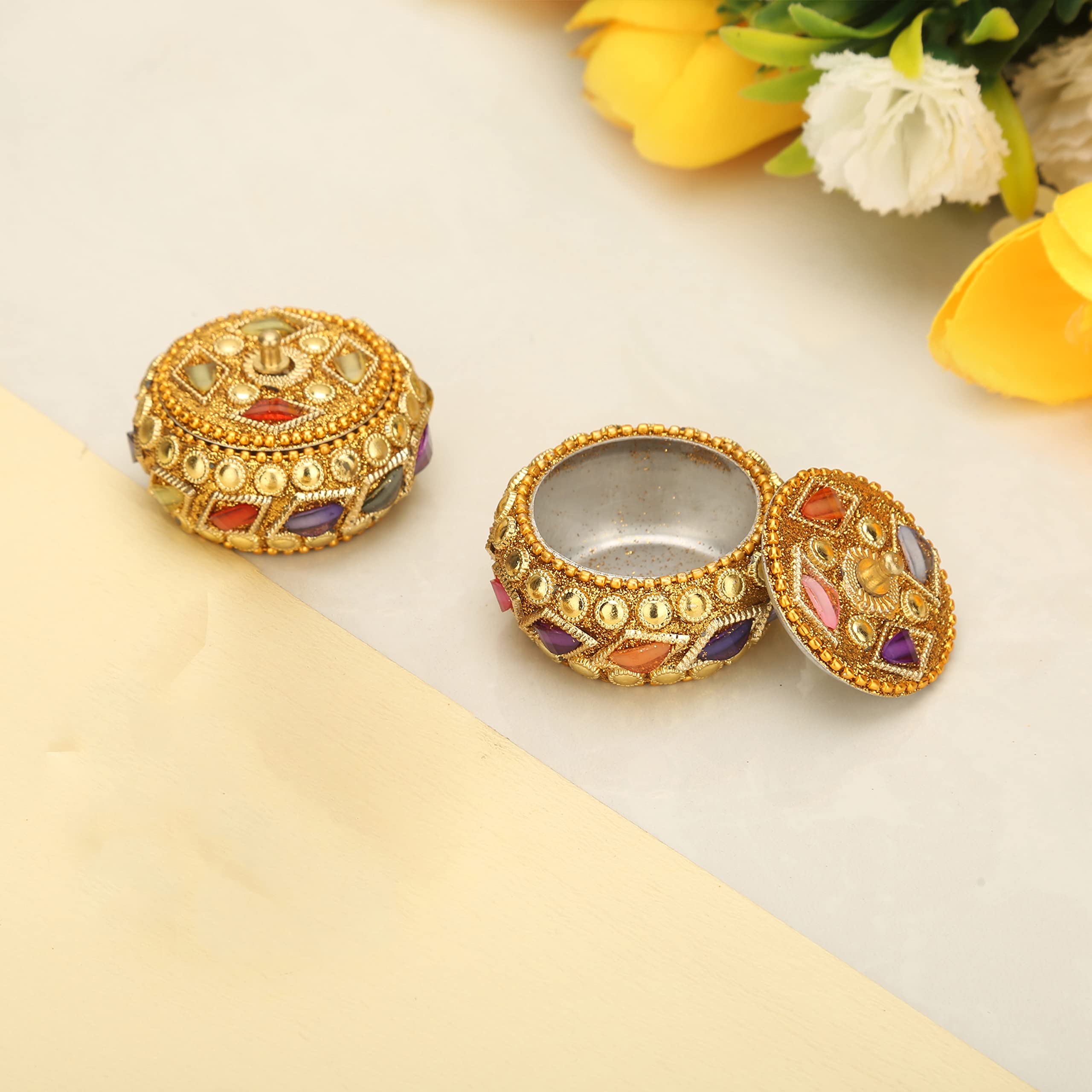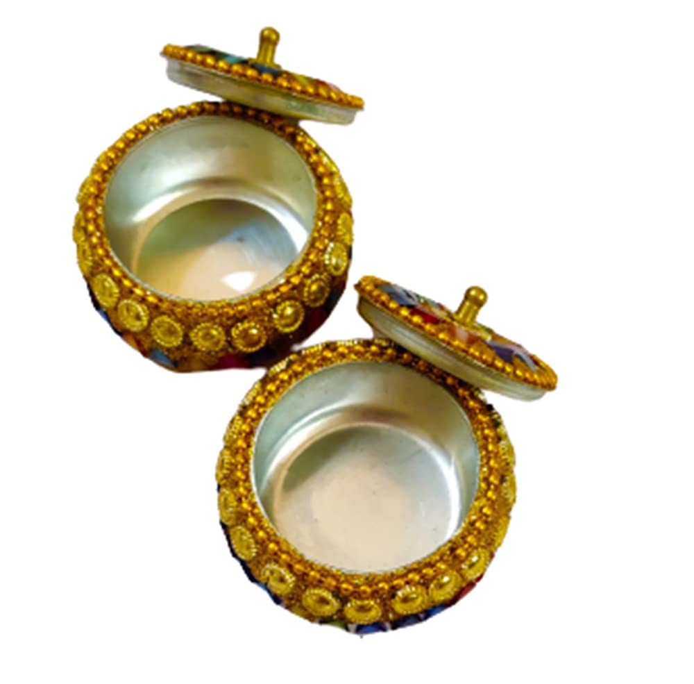 MEENAKARI ENAMEL PRODUCTS Aluminium Golden Jewellery Dibbi Kumkum Box Fancy Sindoor Dibbi Vanity Box (Gold Katora 2 Pcs)
