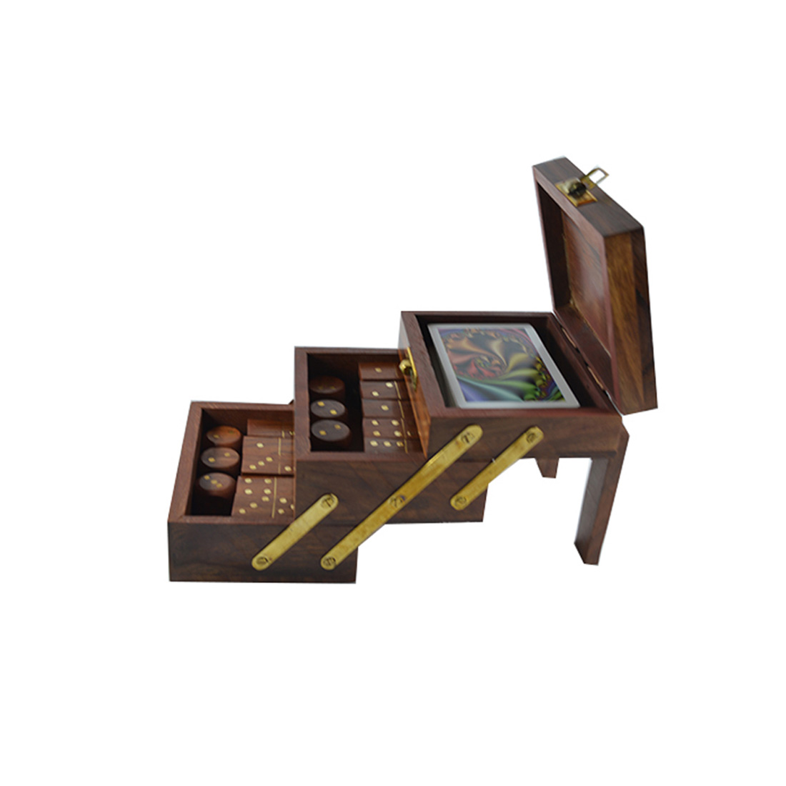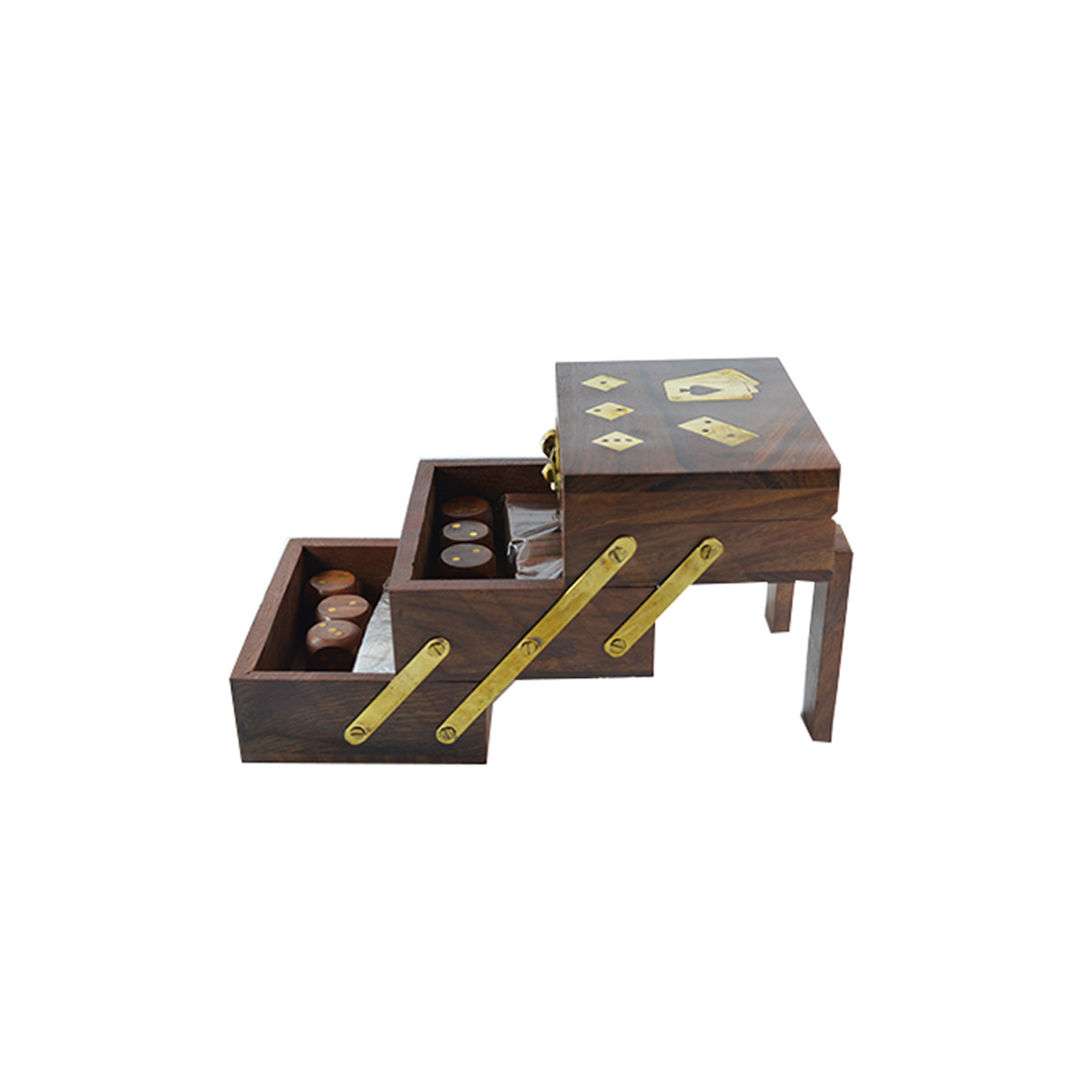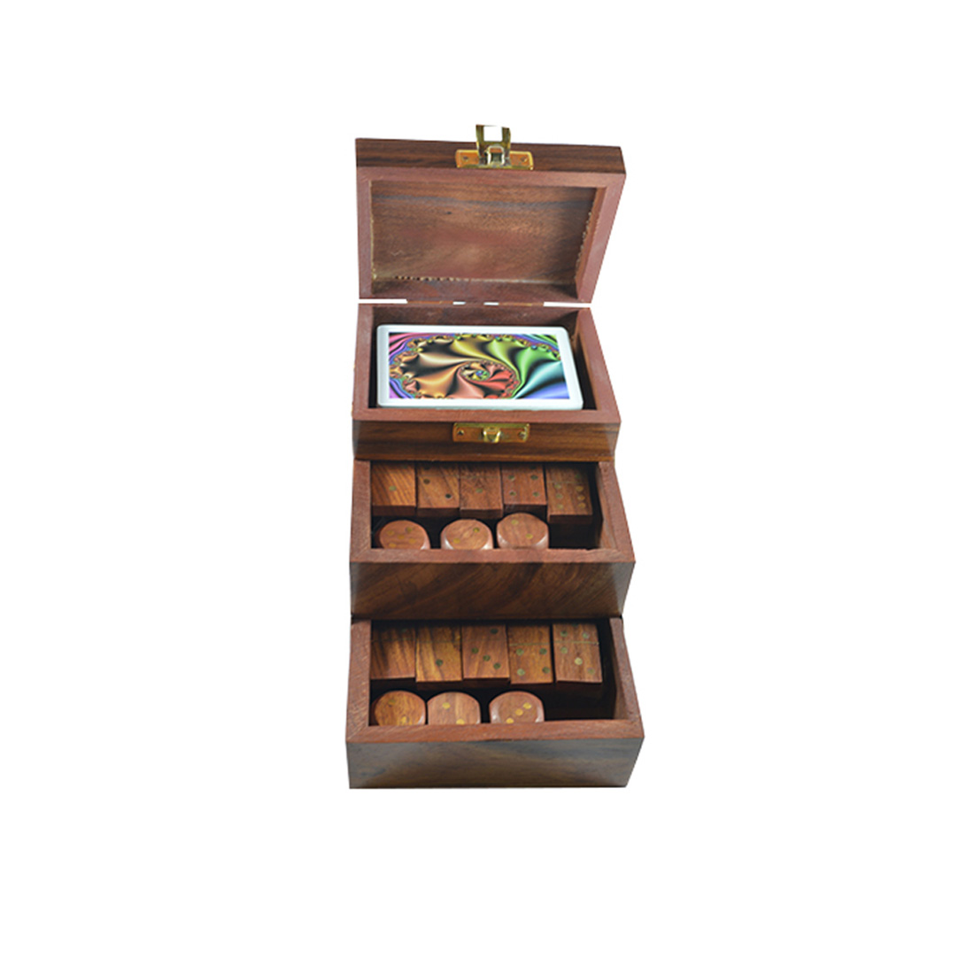 Silkrute Handcrafted Wooden Playing Card, Domino Game and Dice Box