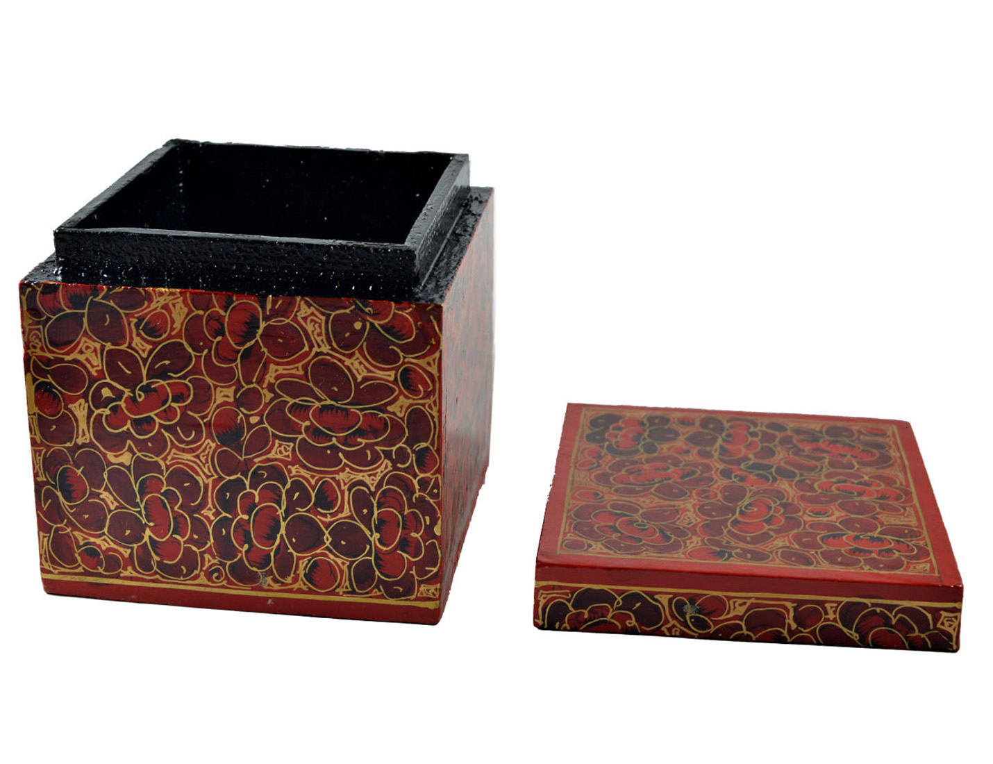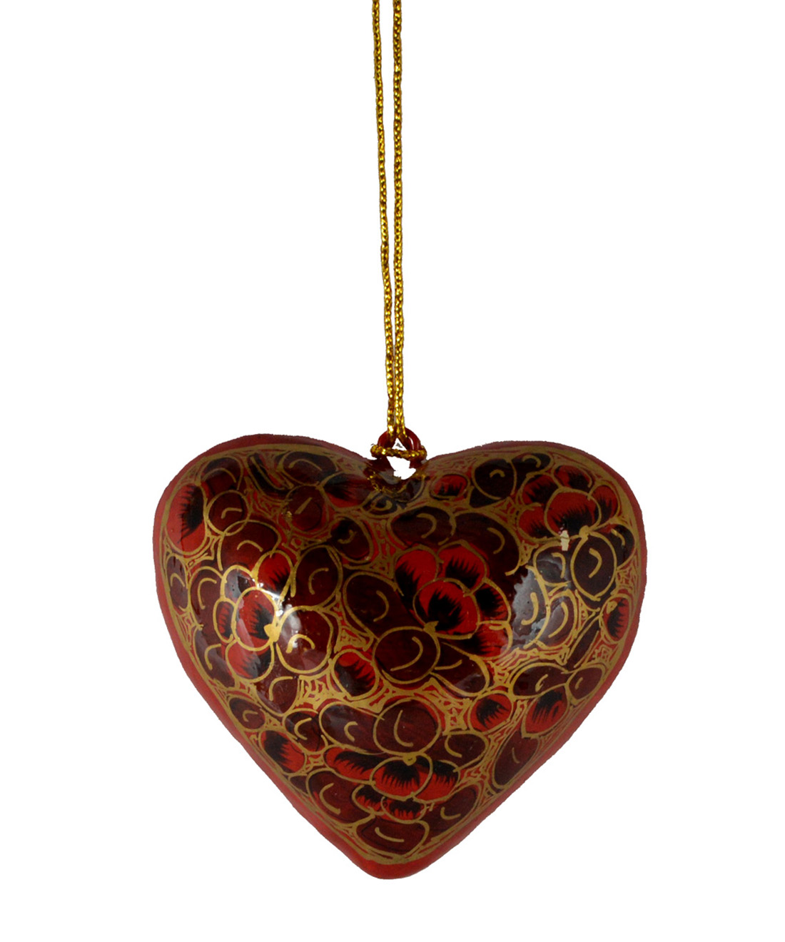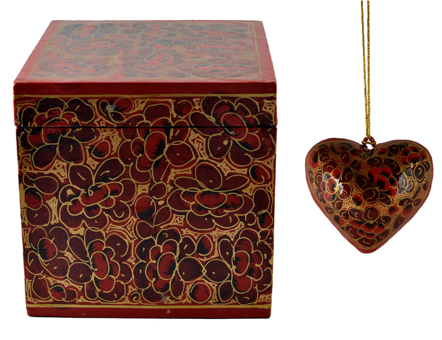 A captivating box with a cute heart made of lacquered papermache having vibrant handpainted patterns to put a smile on any special person's face . These magical trinkets have been crafted by Kashmiri artisans of India. Size (LxWxH)(Inches): Box - 4x4x4 Heart - 3x1.5x3.