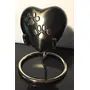 Chrome Stand For Your Heart Shape Pet Urn. This stand fits a 3 inch heart shaped urn for a dog cat or other loved pet. The pictures show the stand with one picture displaying a sample urn so you can see how it looks. This is the stand only no urn is included. Stand securely lets the urn rest while displaying all the good qualities of what you are holding your loved one in.