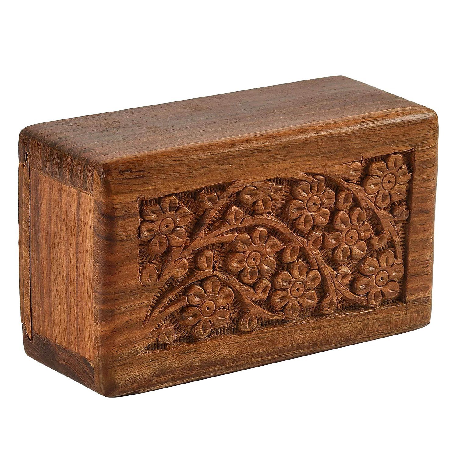 Wooden Cremation Urns for Human Ashes Adult Infant Pets(Dogs Cat etc). The different sizes of URN are available. Opening System : Perfect Opening with Sliding Bottom secured with screw 100% handmade wooden urn for human ashes adult is a beautiful border Inlay on the top and sides made by Indians Handicrafts skilled artisans is durablesolid and affordable. Unique funeral Gift for the loss of yours beloved one.The wood is seasoned to perfection so that the product lasts forever. This is easily adaptable into any room in your home. Different shapes and themes of boxes take a modern approach to a long-established tradition of preserving cremated ashes. There is no better way to remember a loved one who has passed on than with a beautiful cremation urn for their ashes. Cremation Urns allow the family members to keep their loved one near while protecting the earthly remains of the departed. These beautiful vessels are a wonderful alternative to a traditional casket that gets buried in the ground. Many individuals now prefer cremation because it is an environmentally and economically friendly option.
