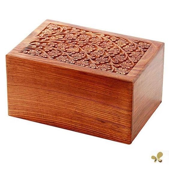 This Ornaments organizer storage box always use fully mature and seasoned wood so that our customers could enjoy the clarity of the completely developed fine grooves. About Design : We are a family of hundreds of craftsmen who keep on nurturing the wood with the best art until the day. We are the developers of various designs in wood box small wooden box industry. About Carving : The carving we have used on this gold jewellery organisers storage box is the best of ancient art. it is one of the traditional arts in wooden organizer for storage industry. About Polish and Other : We never uses the polish technique to hide the blemishes of this wooden storage box. Our polish on this wooden box for jewellery is to sharpen the natural grooves of wood. This wooden box for storage is to store expensive gold jewellery. Cloth inside the jewelry box to keep it scratch free. It can be used as wooden box for money gold necklace bangle box jewelry box vanity box living room decor bed room decor table decor.There is no better way to remember a loved one who has passed on than with a beautiful cremation urn for their ashes. Cremation Urns allow family members to keep their loved one near while protecting the earthly remains of the departed. These beautiful vessels are a wonderful alternative to a traditional casket that gets buried in the ground. Many individuals now prefer cremation because it is an environmentally and economically friendly option. Wooden Cremation Urns for Human Ashes Adult Infant Pets(Dogs Cats etc). Different sizes of URN are available. Opening System: Perfect Opening with Sliding Bottom secured with screw handmade wooden urn for human ashes adult is a beautiful border Inlay on the top and sides made by Indians Handicrafts skilled artisans is durable solid and affordable. Unique funeral Gift for the loss of your beloved one. The wood is seasoned to perfection so that the product lasts forever. This is easily adaptable to any room in your home.