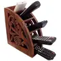 This Fancy remote control organizer organizes all of your TV related handheld controls and keeps them within arms reach. Convenient table top holder features a stylish curved stair step shape that keeps up to 4 remote controls in view and easily accessible. No more lost or misplaced remotes! Slim design takes up very little space on you coffee or end table.