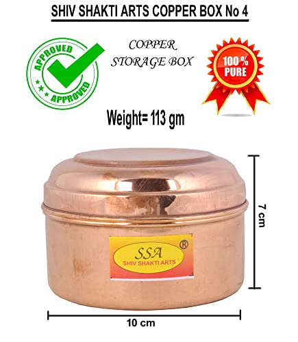 SHIV SHAKTI ARTS® Pure Copper Box |Jewellery Box| Dibbi| Puja - Mandir Roli/Chawal/Chandan/Kumkum Puja Box/Dabbi-Size No 4 (4 PieceBrown)