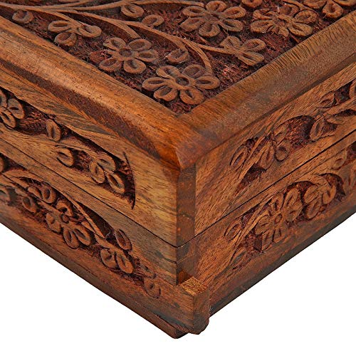 Wooden Handcarved Jewellery Box Jewel Storage Organizer Great Gift Ideas Dimension - 5.5 x 4 x 5 Inch Product features: Protect and preserve your valuables with this handcrafted wooden jewelry box. You always want to keep your best valuables precious jewelry safely. This wooden jewelry box is perfect for organizing your Jewelry collection. A stylish way to keep your jewelry organized. Other Details: This wooden jewelry box has a curved; traditional design; rich brown finish. Our handmade jewelry boxes make gifts for women and girls that can be treasured for a lifetime.