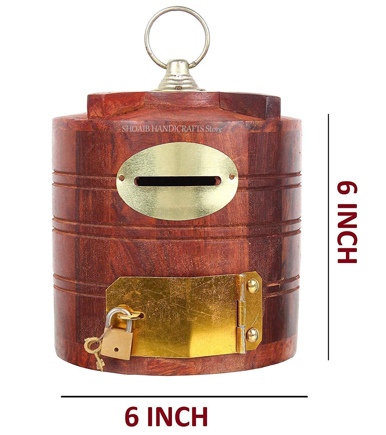 WOOD CRAFTS OF RAJASTHAN Wooden Piggy Bank Gullak for Kids and Adults Wooden Handicrafts Money Box with Lock Water Tank Shape (Wooden Money Bank Coin Storage Kids 16)