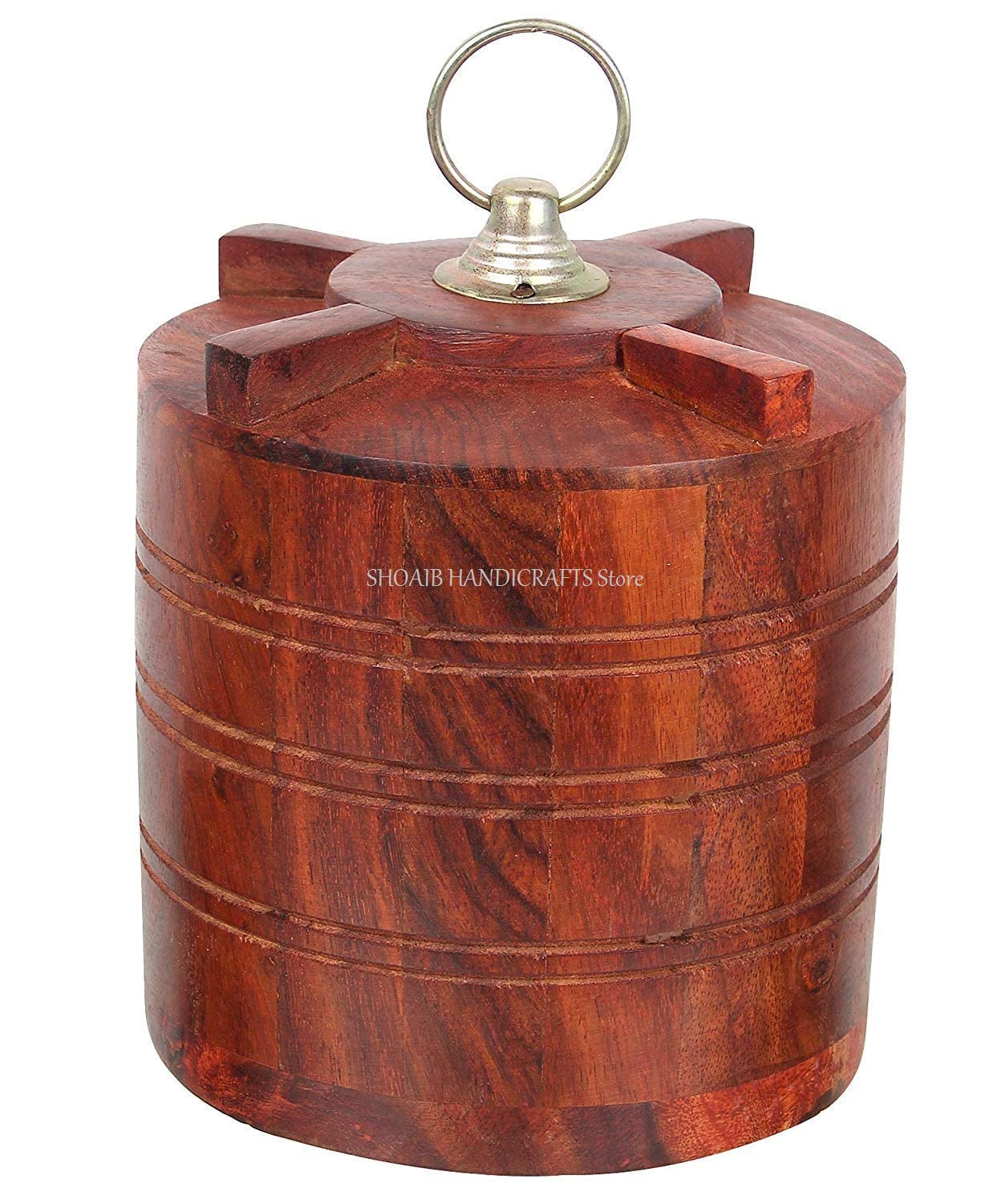 HomeFashionBoxes & HoldersWOOD CRAFTS OF RAJASTHAN Wooden Piggy Bank Gullak for Kids and Adults Wooden Handicrafts Money Box with Lock Water Tank Shape (Wooden Money Bank Coin Storage Kids 16)