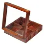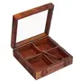 Wooden spice box 6 inch Cooking can be considered as an art and the kitchen as a canvas. Just like in painting you will need the right spices and ingredients at the right place for creating a masterpiece food. It would be very convenient if all the spices are placed close to each other so that they can be accessed easily while cooking. The wooden spice box helps you to store up to four different spices close to each other without mixing them up. The main advantage of using the wooden spice box is that the wooden material preserves the purity of the spices and keeps them in a natural environment and improves the taste of the dishes. The box can be also used for serving the nuts and dry fruits to your friends and family.