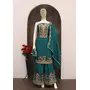 Teal Blue Chinon Semi Stitched Suit with Embroidery Sequence Work