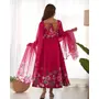 ANARKALI FABRIC: HEAVY PURE SOFT ORGANJA SILK PRINT, ANARKALI HANDWORK:FRONT ON FANCY BADLA JARI WORK FLOWER POSITION OUTING WORK, FANCY FRONT HANDWORK, FULL LENGTH SLEEVES, PADDED, ZIPPER ATTACHED COMPLETE, GOWN FLAIR: 4 MTR APPORX FLAIR WITH KALI CUT ATTACHED COMPLETE WITH CANVAS PATTA, ANARKALI INNER: PURE MICRO COTTON WITH CANVAS PATTA ATTACHED, DUPATTA WORK: 2.3 MTR PURE SOFT ORGANJA SILK WITH BOADER GOTA PATTI LACE WORK, ANARKALI LENGTH:48 49 INCH APPORX, PENT:MICRO COTTON SILK FREE SIZE FULLY STTICHED, SIZE :XS(34) S(36) M(38) L(40) XL(42) And XXL(44) Fully stitched ready to wear.