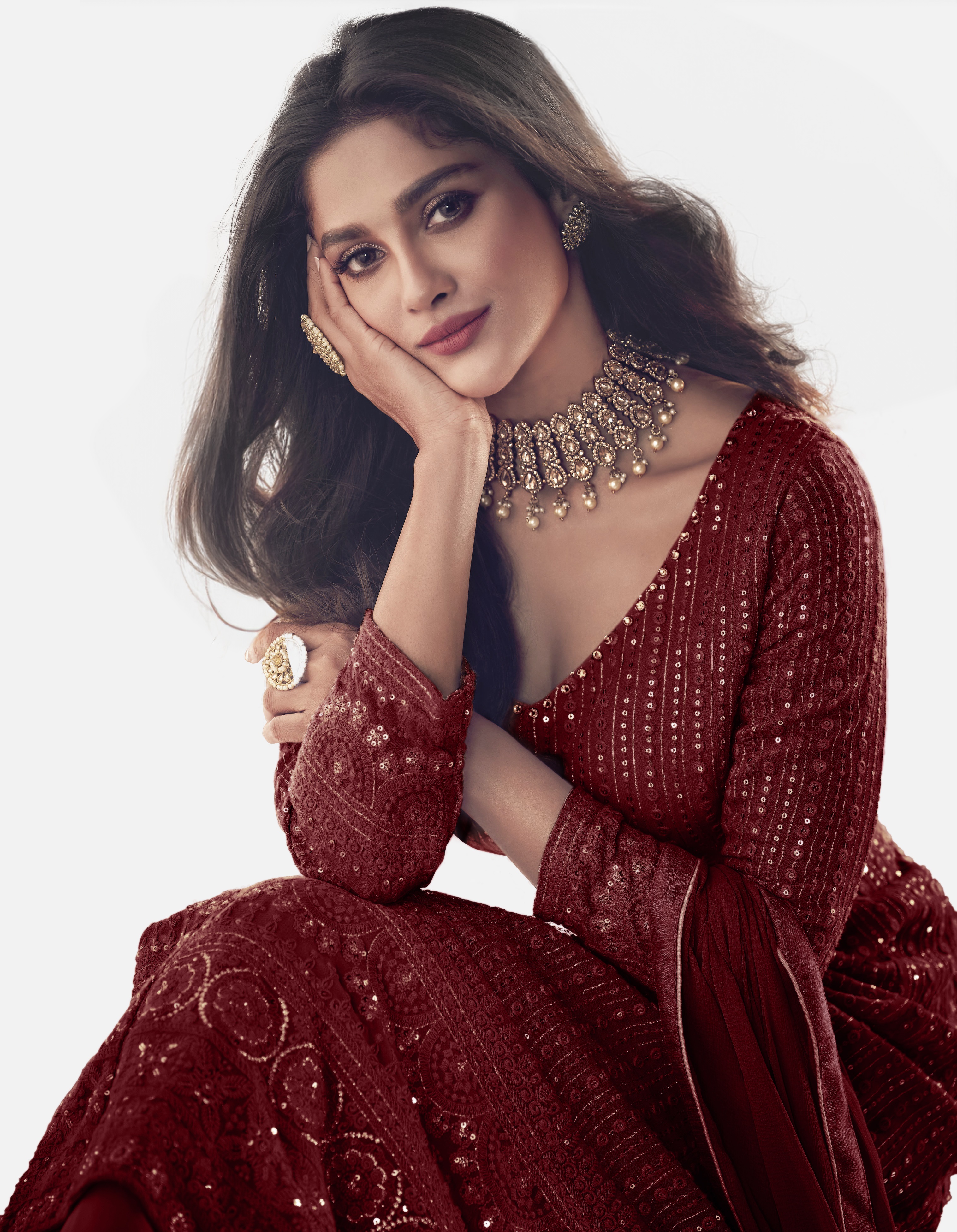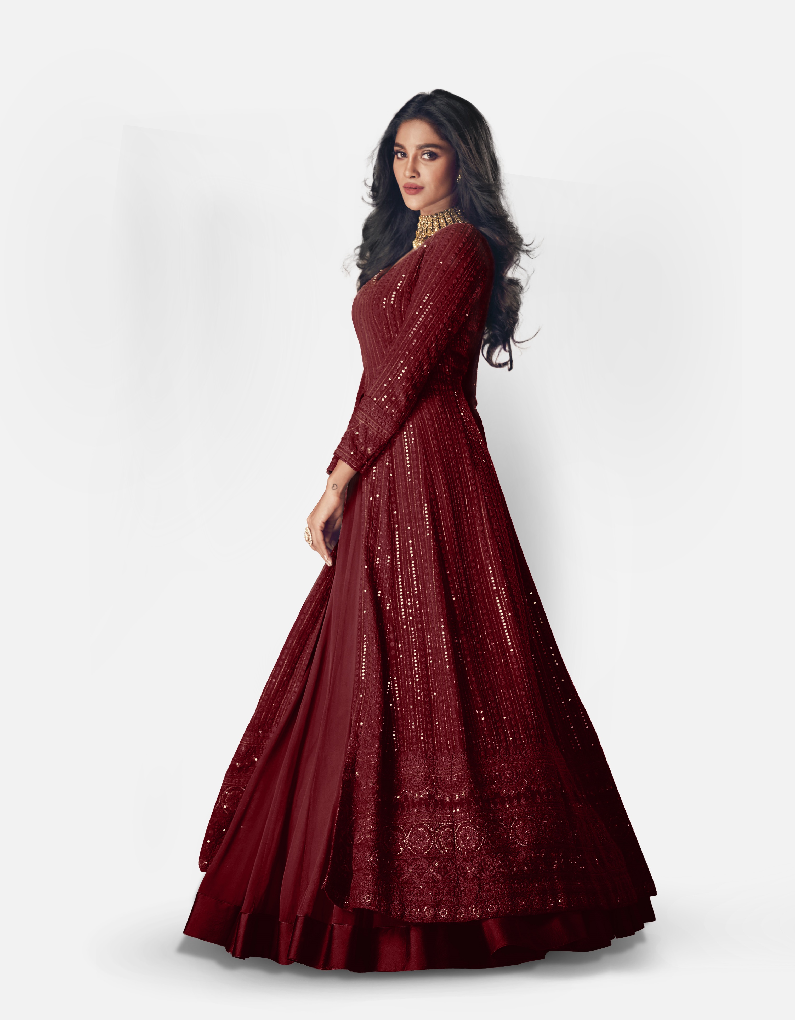 Designer Ethnic Suit Set with Dupatta Faux Georgette Fabric Thread And Sequins Embroidered Work for Women – Maroon Color