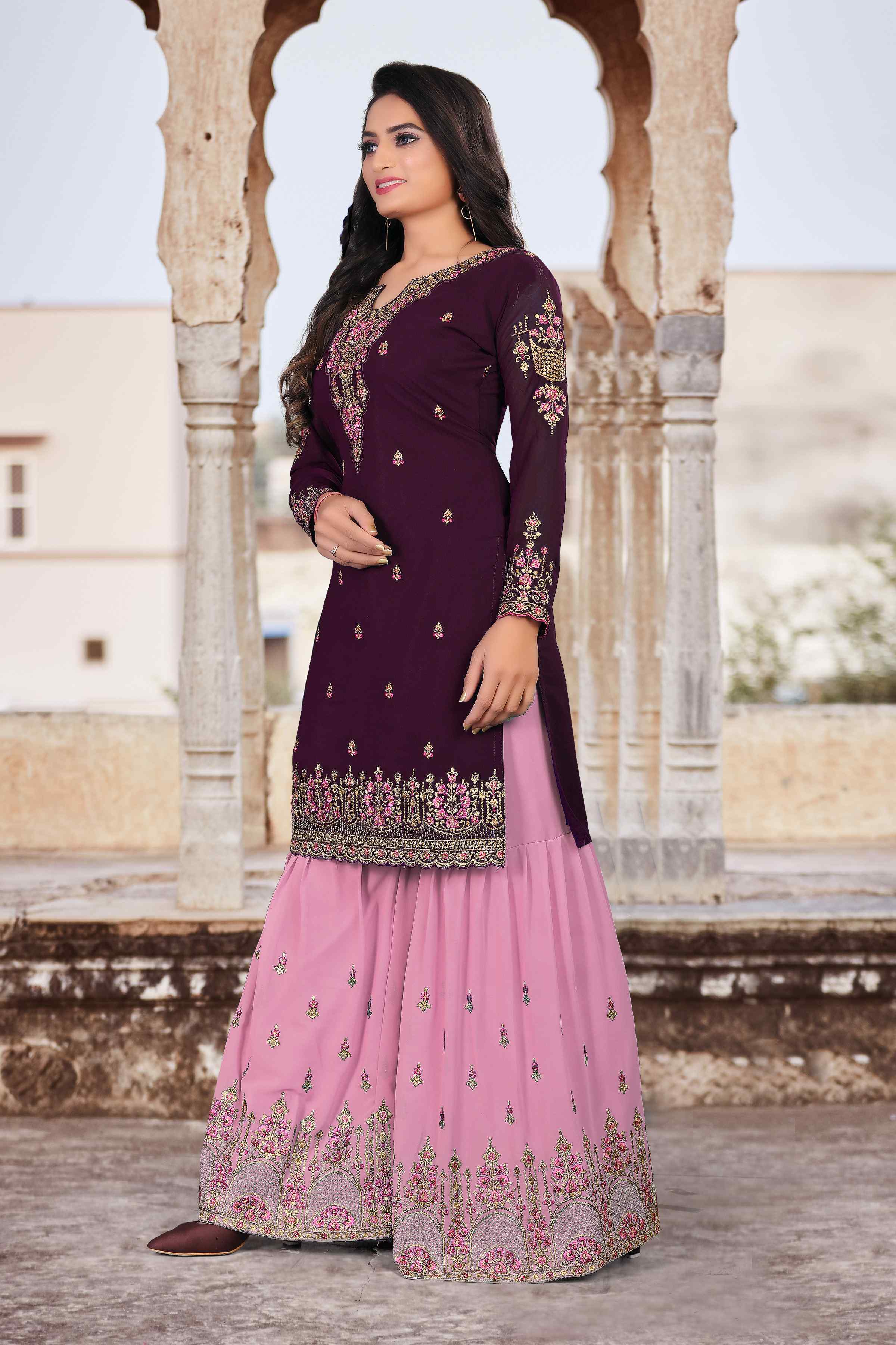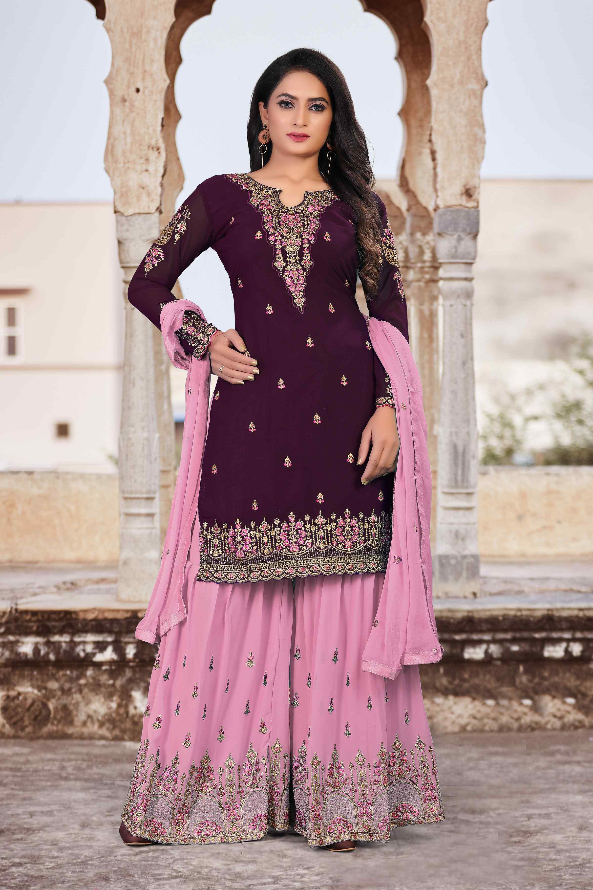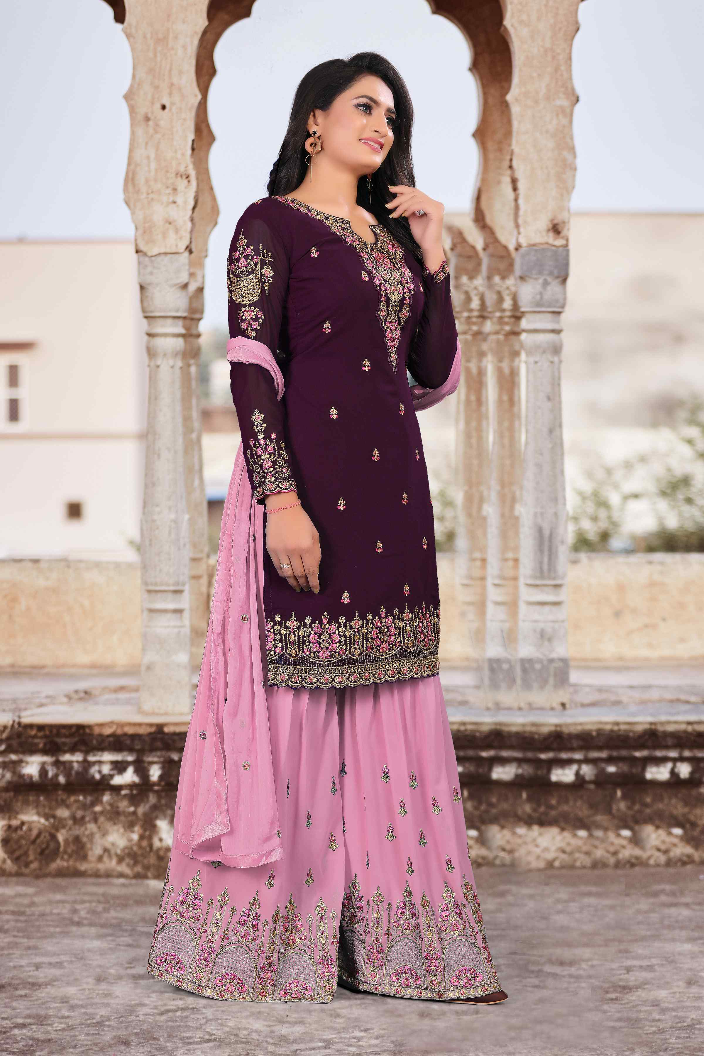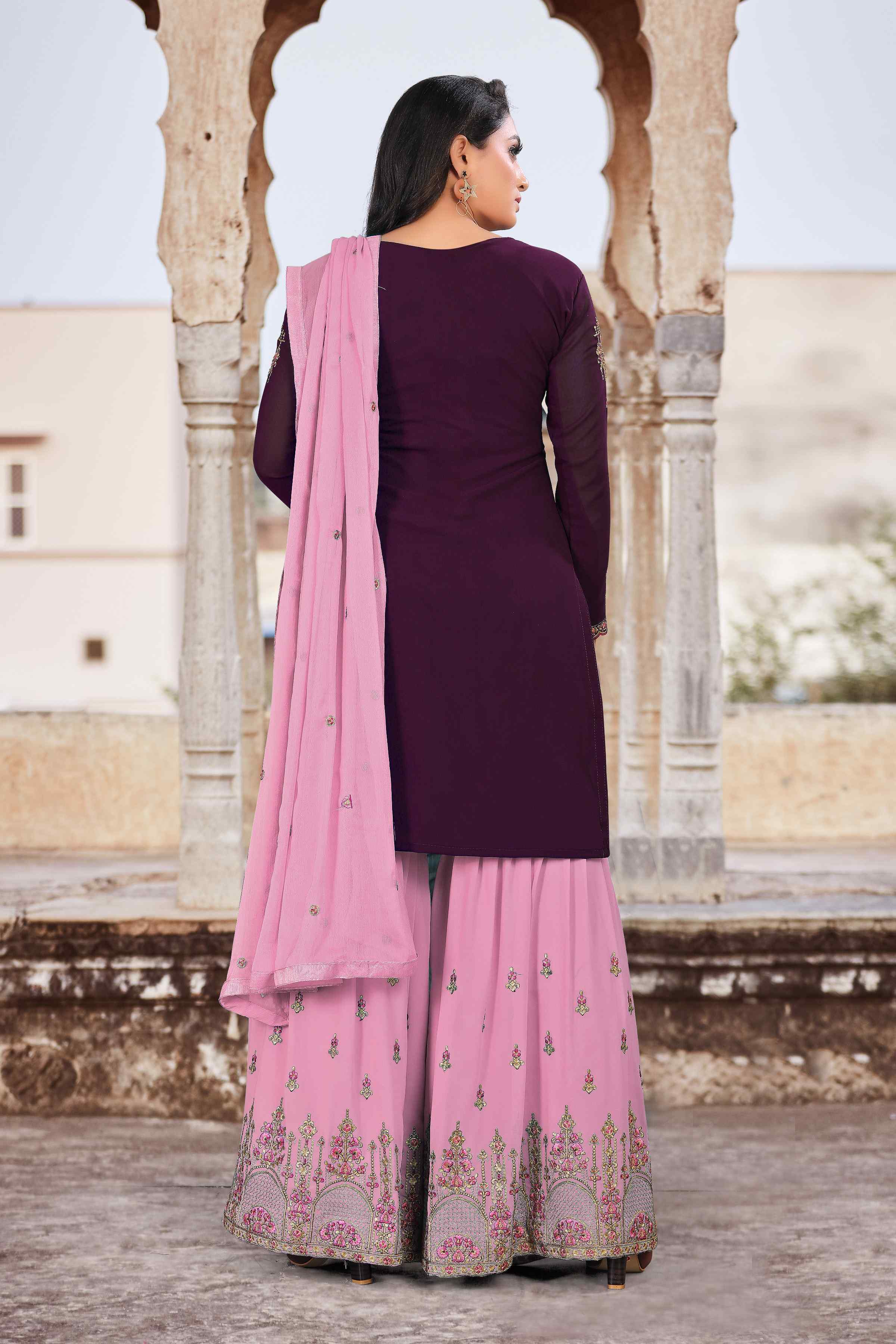 HomeFashionKurtas & Kurta SetsDesigner Ethnic Suit Set with Dupatta Faux Georgette Fabric Thread And Zari Embroidered With Diamond Work for Women – Purple Color