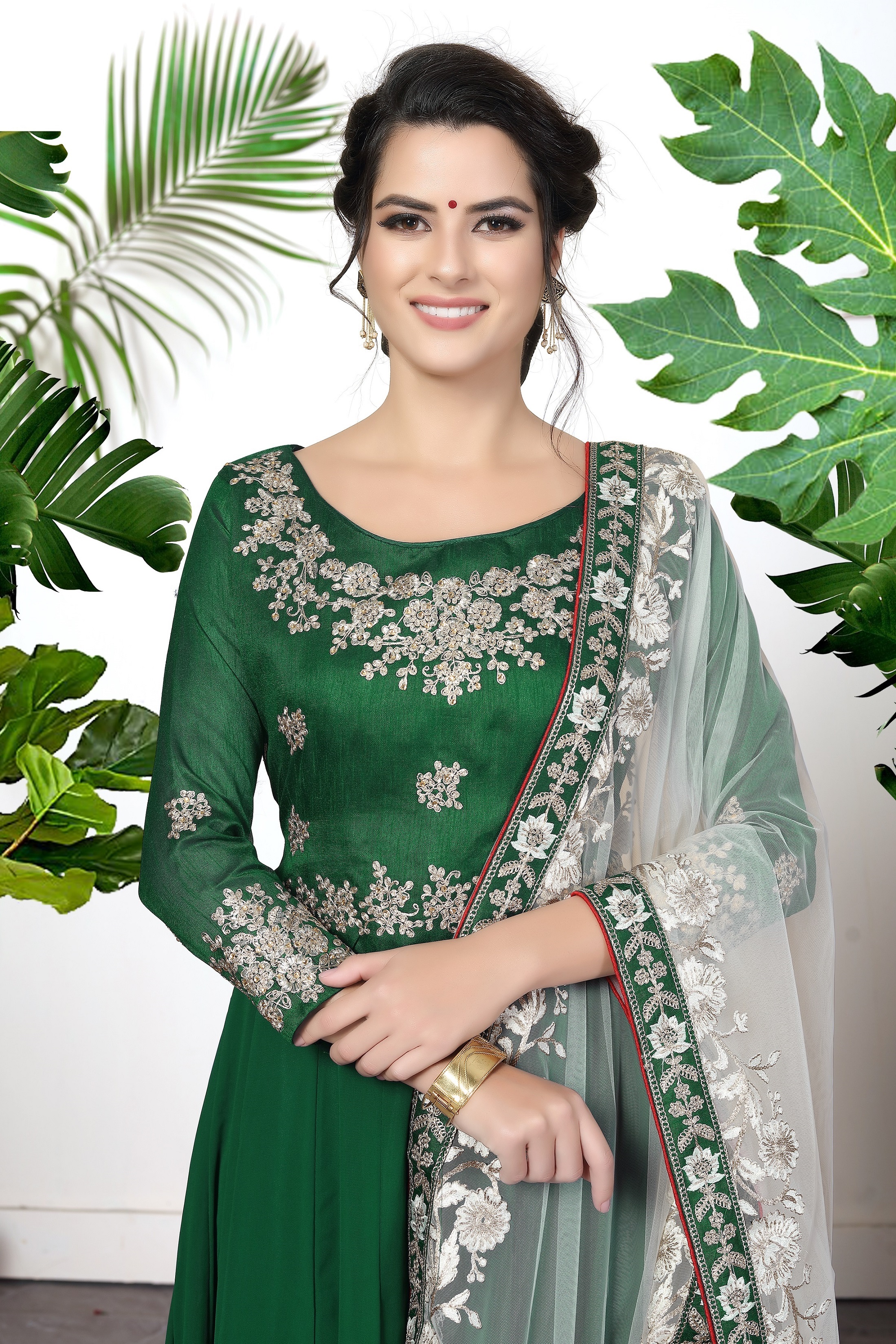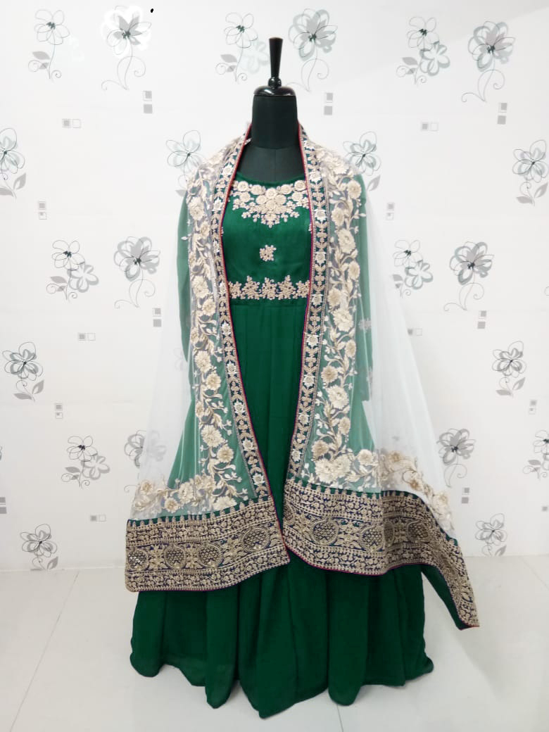 Designer Ethnic Suit Set with Dupatta Faux Georgette Fabric Zari Embroidered With Diamond Work for Women – Green Color