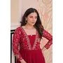 GOWN :-FABRIC WORK :- Faux Blooming With Sequins Zari Embroidered workSIZE :- M(38), L(40), XL(42), XXL(44)LENGTH :- 52-54 INCHFLAIR :- 12 MTRLINING :- Cotton (Full Inner Top To Bottom)SLEEVES TYPE :- Regular Full SleeveNECK TYPE :- Fancy V Neck As imageSTITCHING TYPE :- Standard Stitch 3 Layer Stitching.