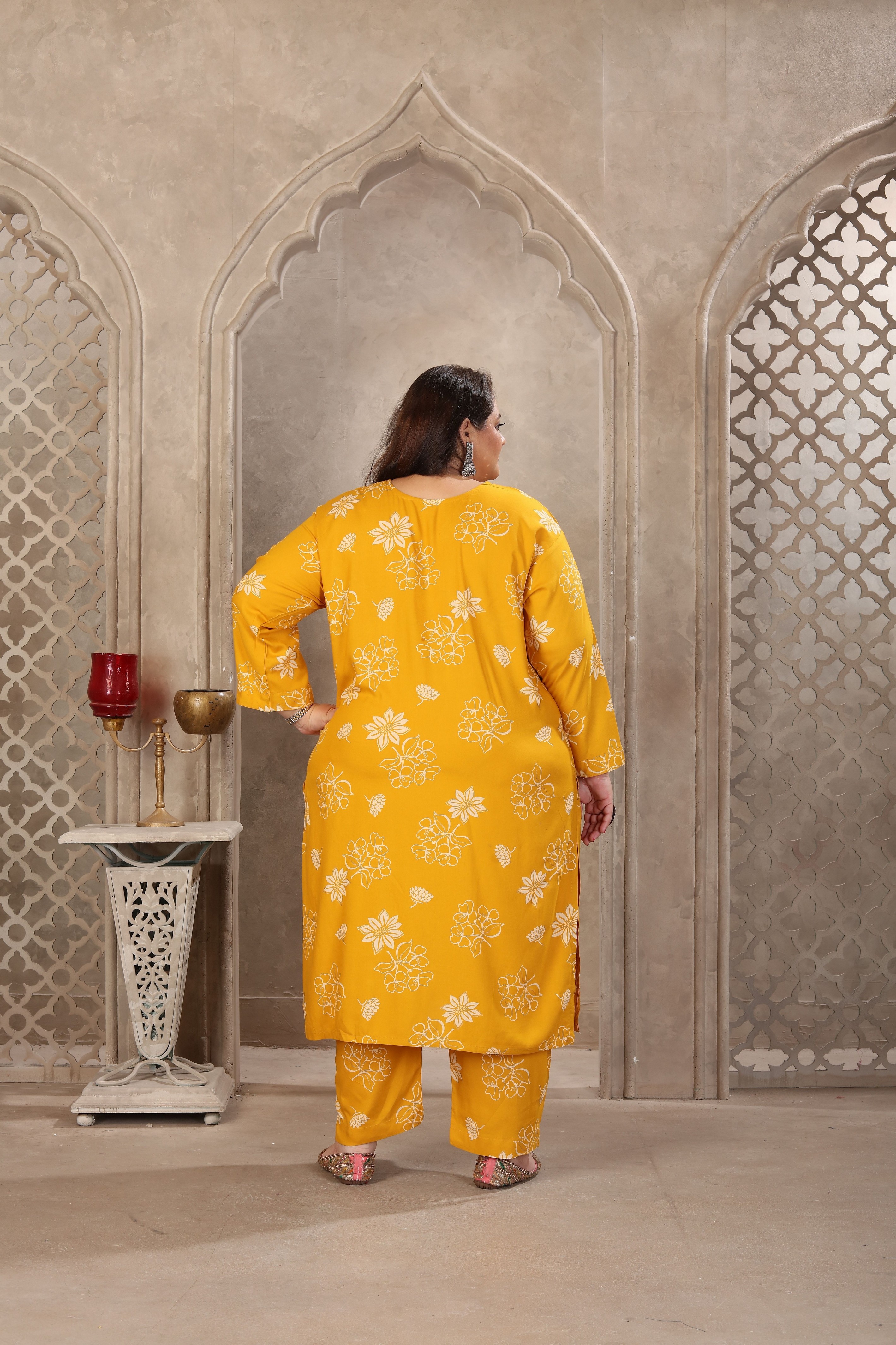 Mustard Color Rayon Fabric Prited Plus Size Kurta Set With Dupatta