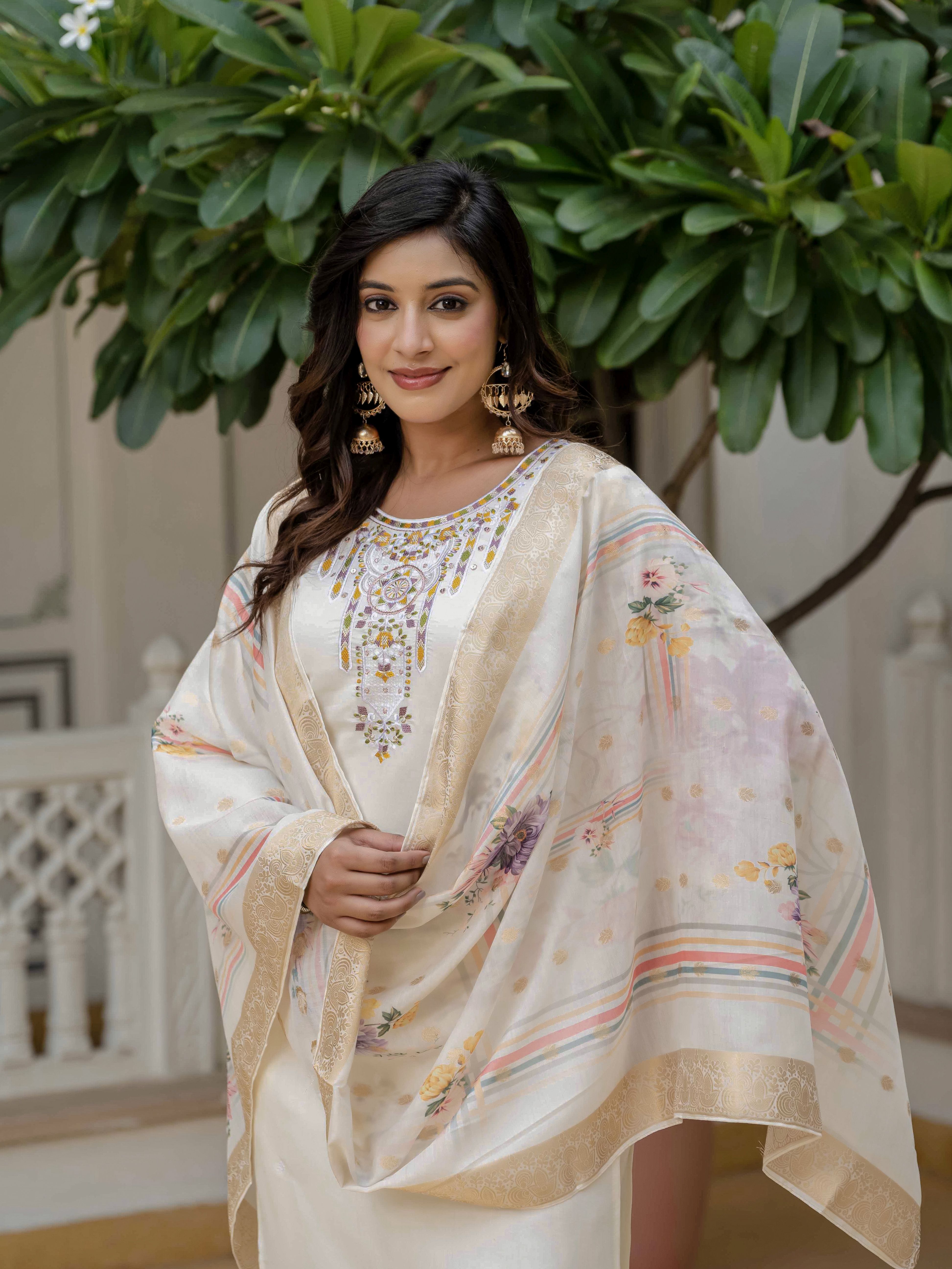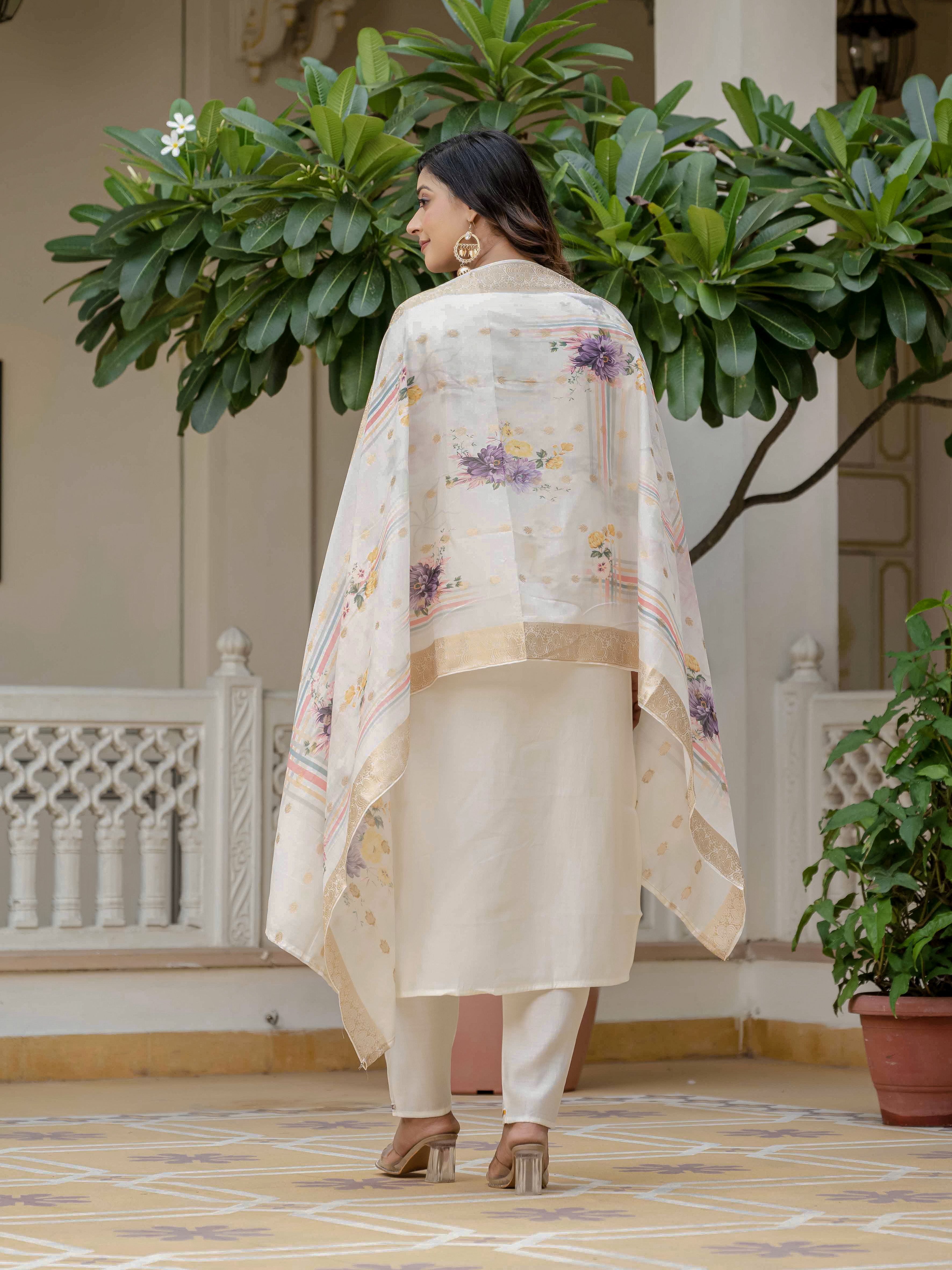 Off White Color Roman Silk Fabric Graceful Festive Special Kurta Set