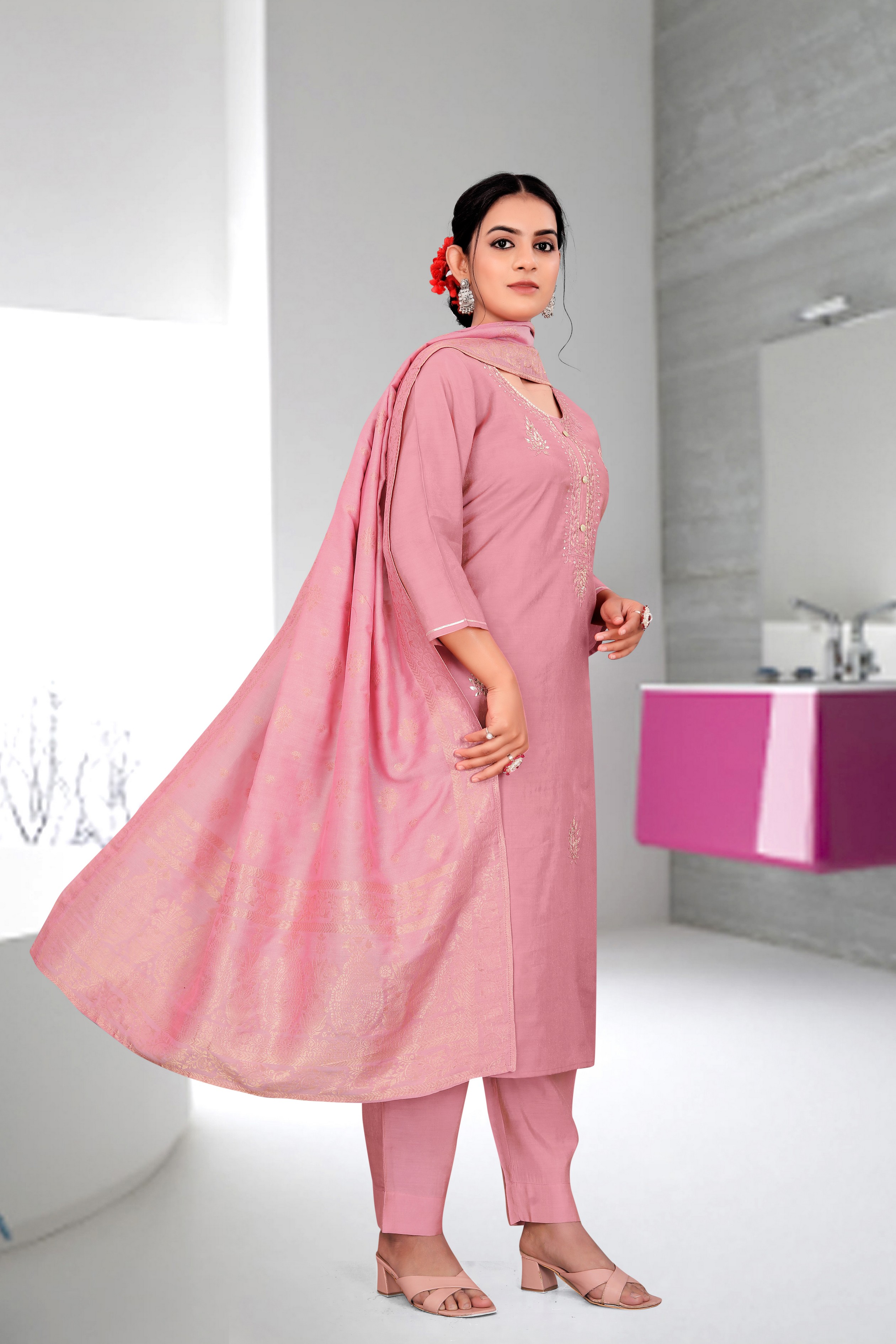 Pink Color Ethnic Fancy Readymade Salwar Kameez