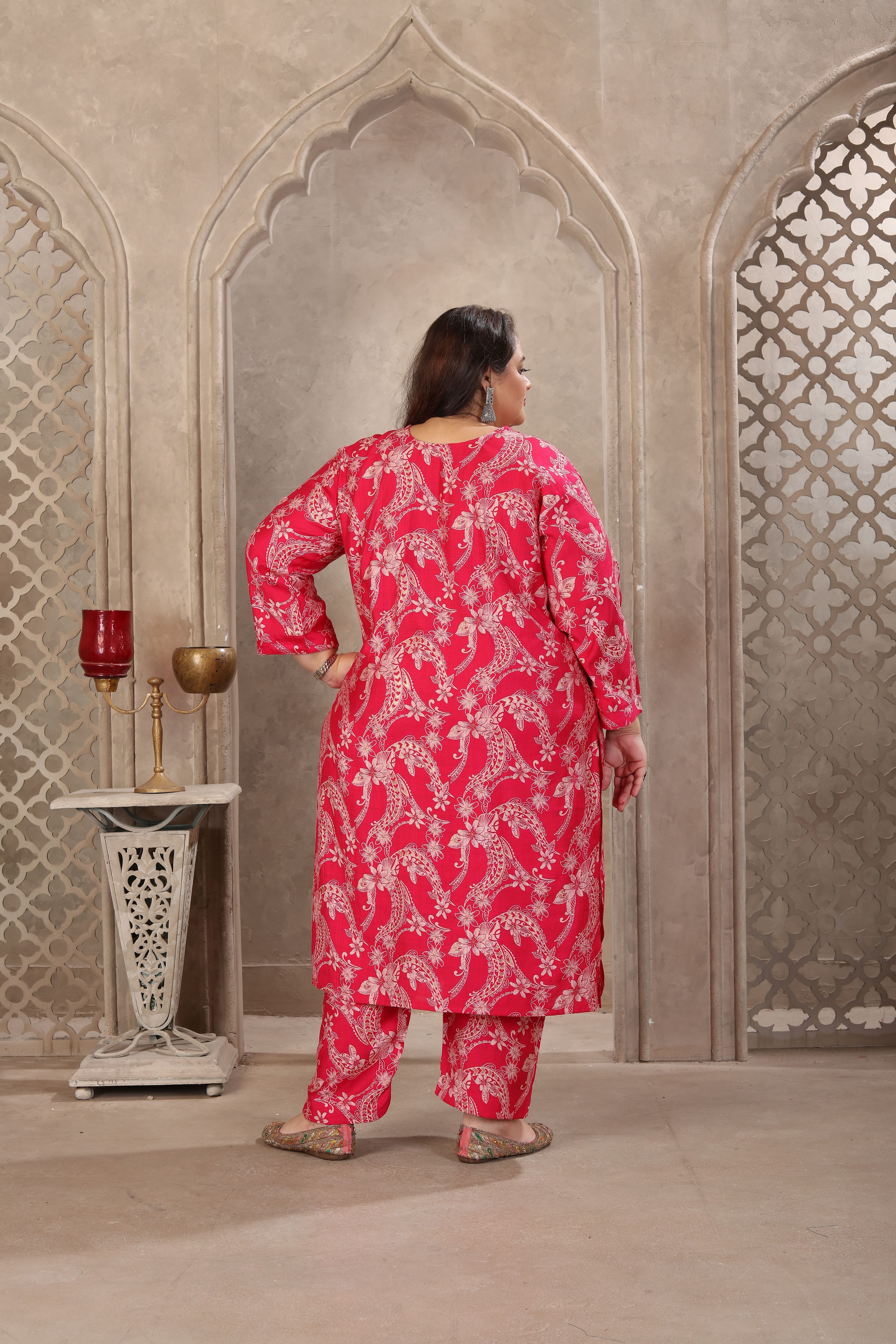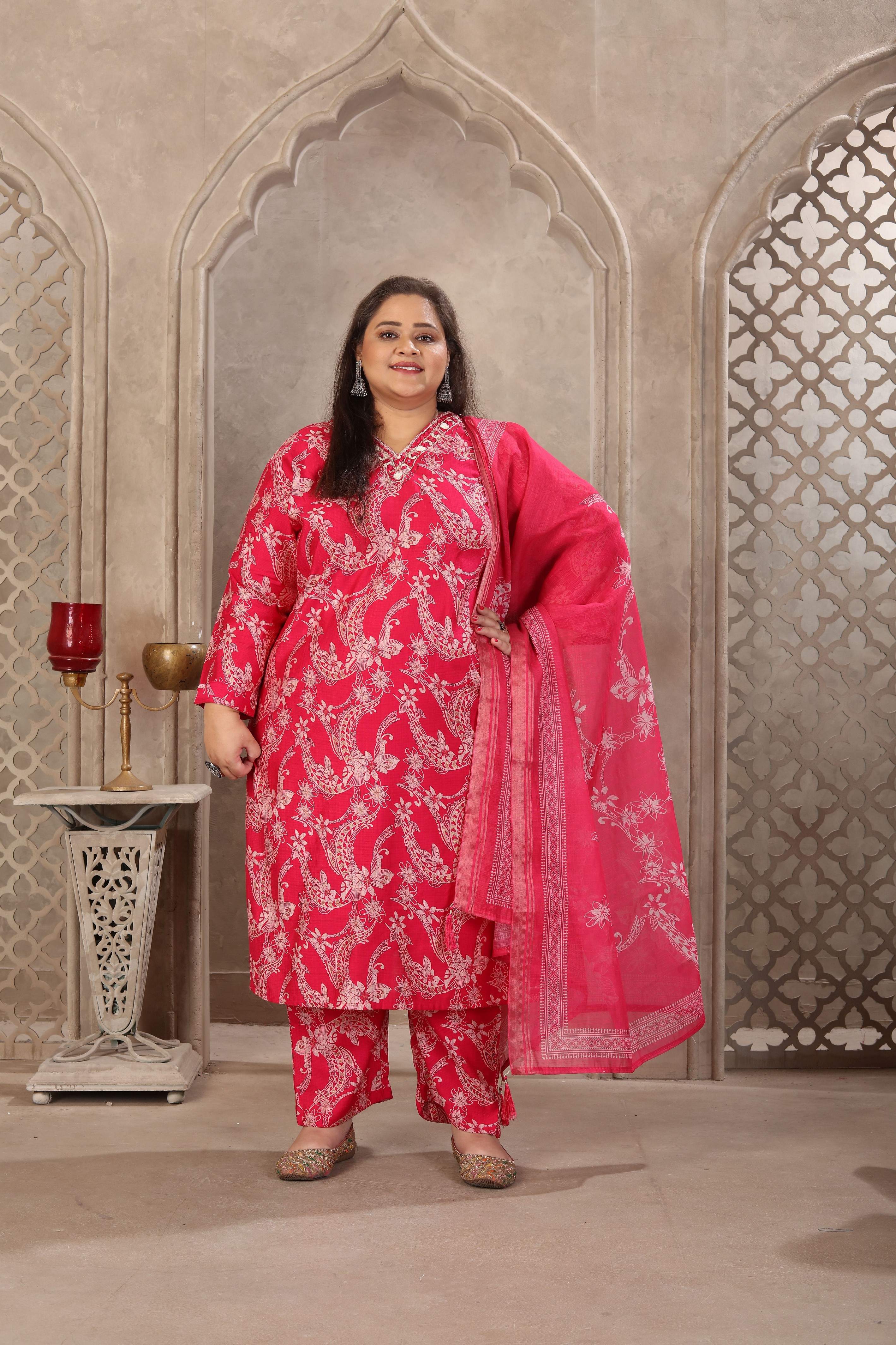 Pink Color Lichi Viscose Fabric Prited Plus Size Kurta Set With Dupatta