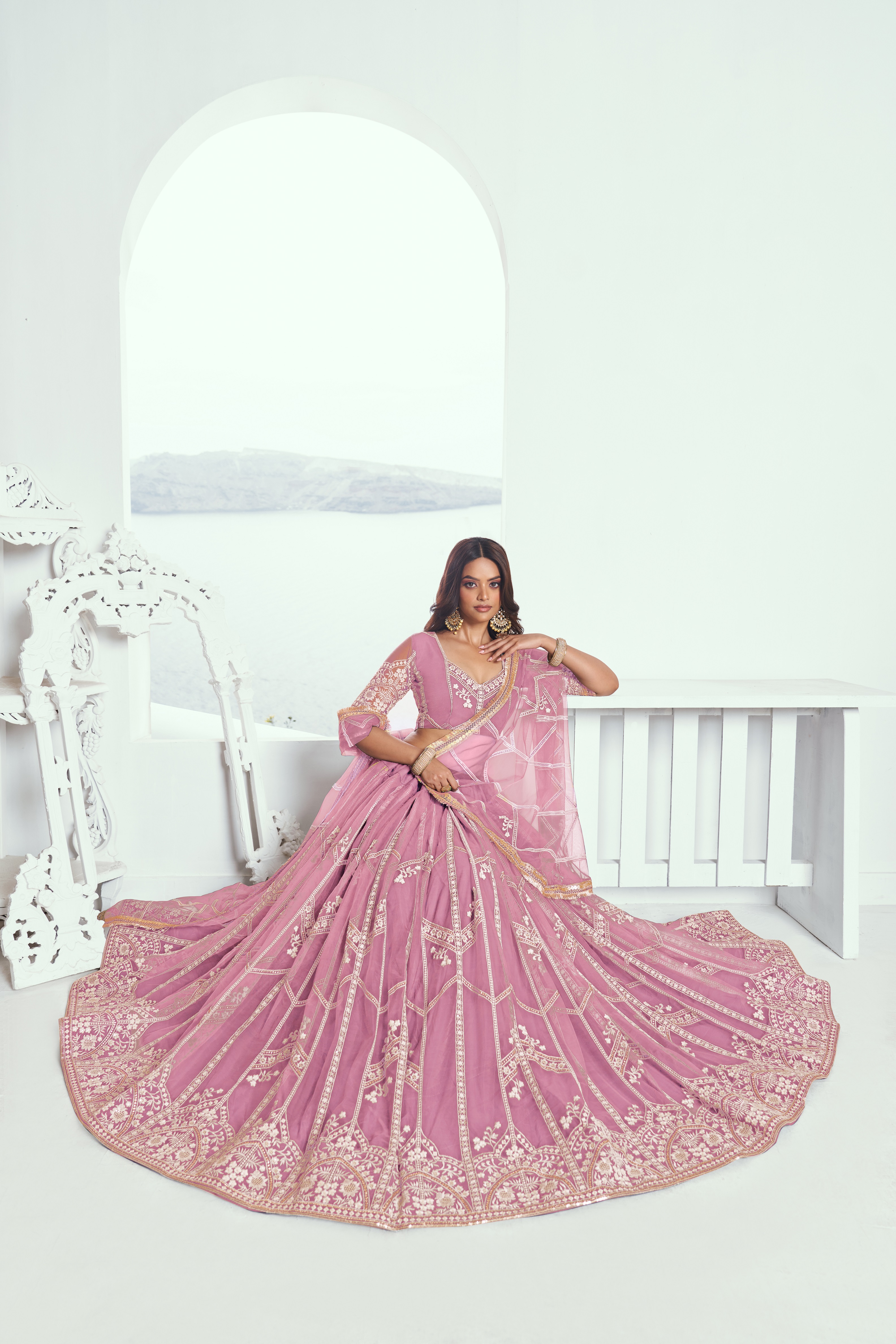 Designer Lehenga Choli Set with Dupatta Butterfly Net Fabric Zari Work And Sequence Work Embroidery for Women – Pink Color