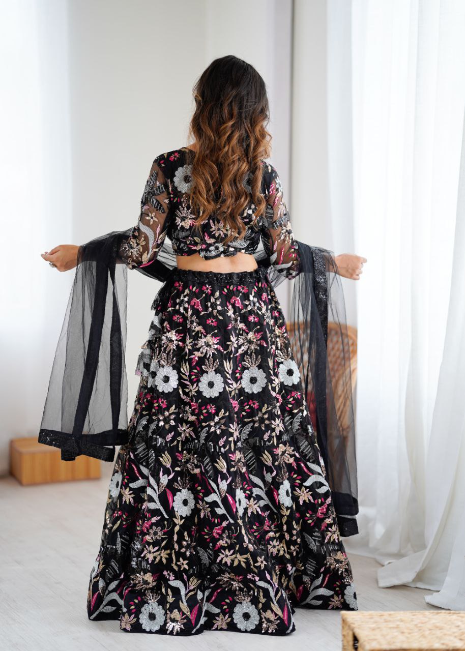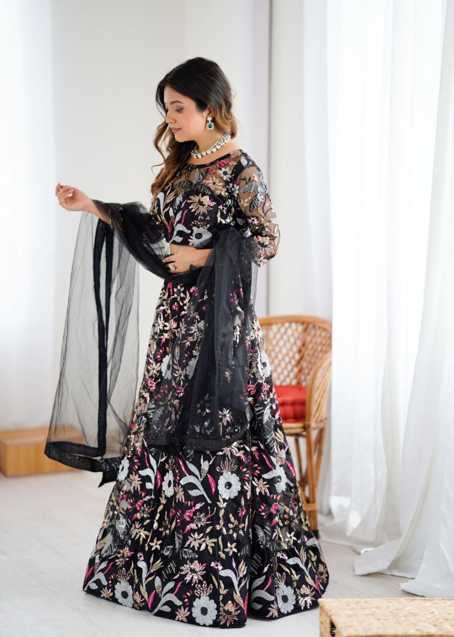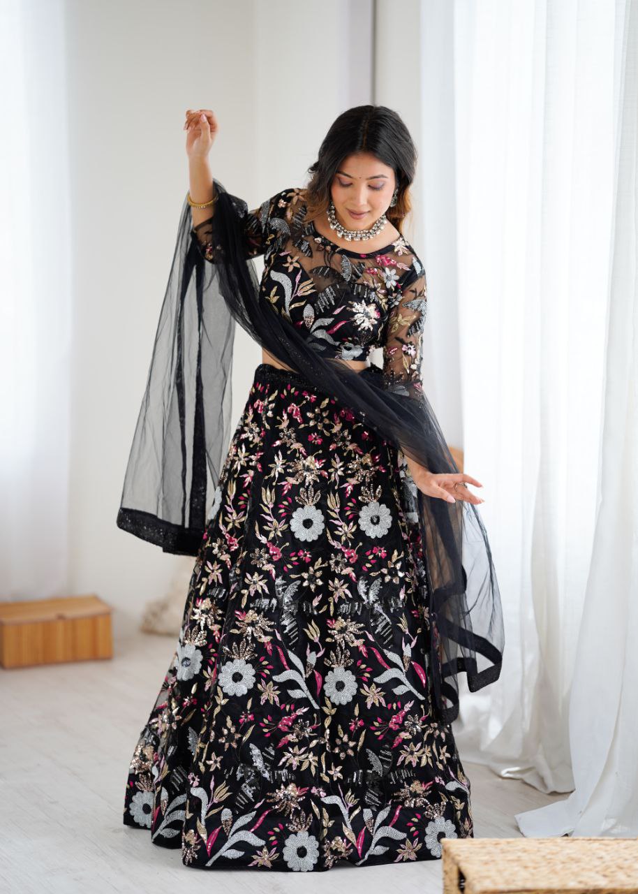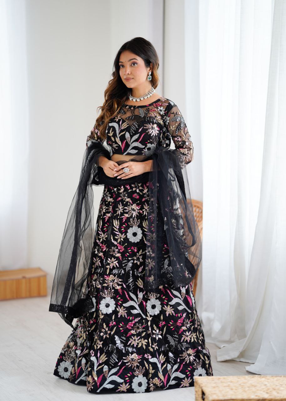 Designer Wedding Lehenga Choli Set with Dupatta for Women Black Color