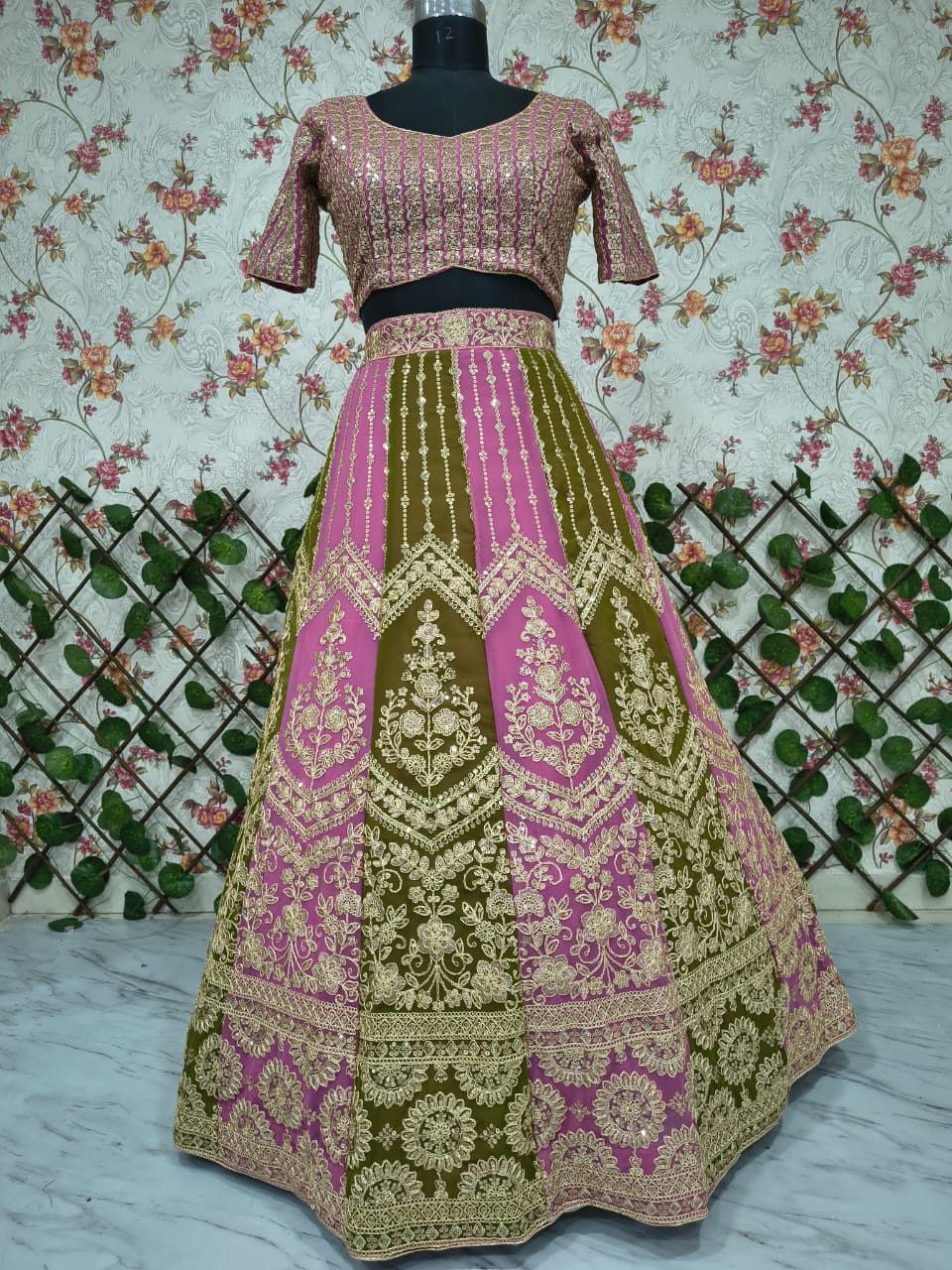 Fabric DetailsLehenga : Premium Faux Georgette Lehenga Embellished With Beautiful Embroidery Work, Dori Work With Heavy Sequins Work With Heavy Cancan And Canvas With Double Inner Covering With 3.5 Mtr Flair( Semi Stitched. )Blouse : Premium Faux Georgette Embellished With Beautiful Embroidery Work, Coding Work AndBeautiful Sequins Work Both Side Work Front And Back WithWork sleeves( Unstitched )Dupatta: Premium Faux Georgette With Digital Print Shading And Embellished With Beautiful Embroidery Work, Coding Work And Beautiful Sequins Work( 2.5 MTR ).