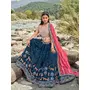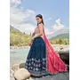 Womens Blue Faux Georgette Thread Embroidery Lehenga Set