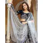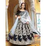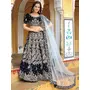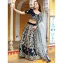 Womens Navy Blue Velvet Zari Work Lehenga Set