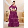 Elevate your ethnic look with this purple georgette lehenga featuring lehariya work. Designed for festive occasions and celebrations, it offers a graceful flow and timeless appeal.Crafted from lightweight georgette fabric with a semi-stitched finish, this lehenga ensures comfort and easy customization. Dry clean recommended.