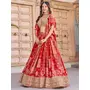 Womens Red Chinnon Dori Embroidery Lehenga Set