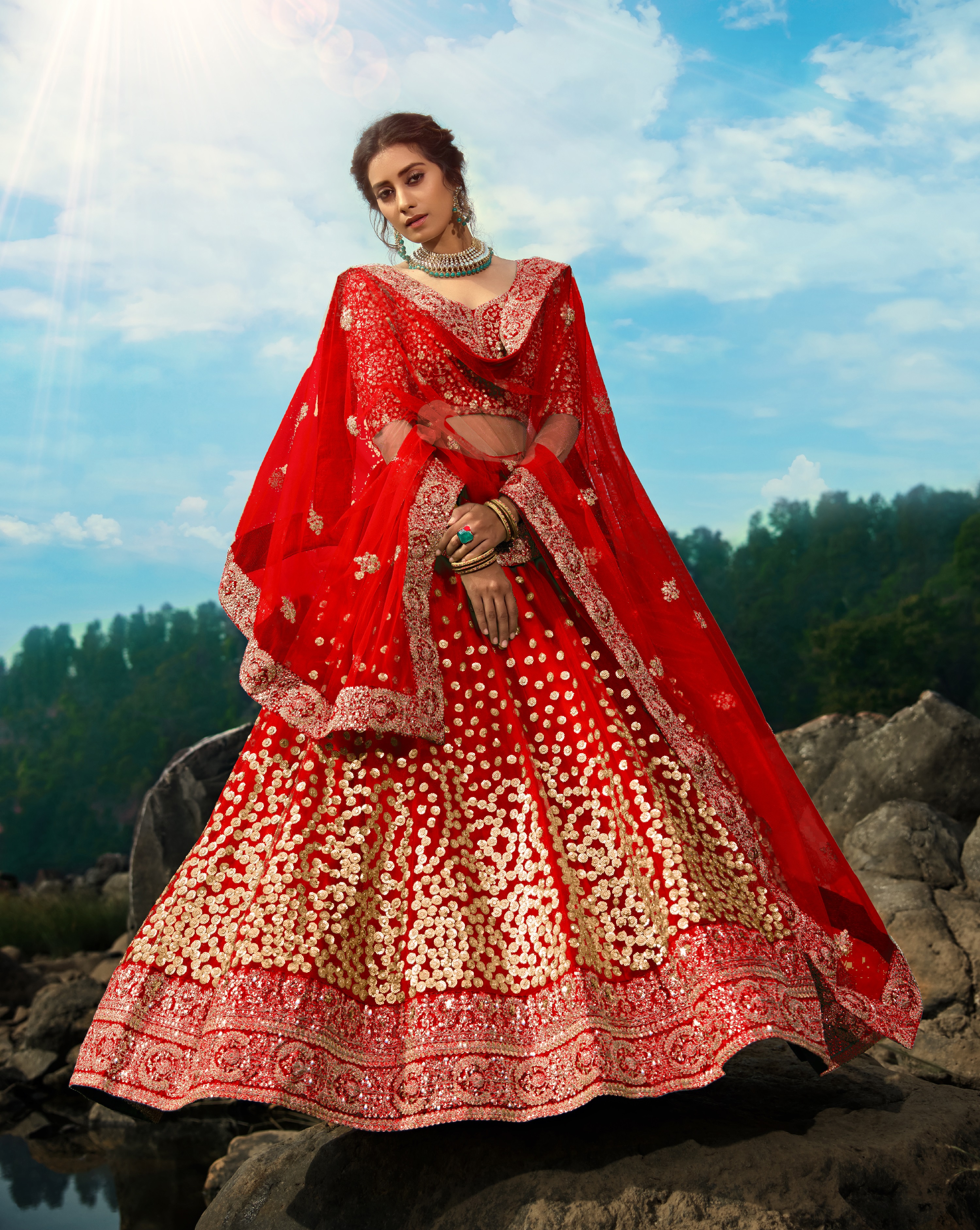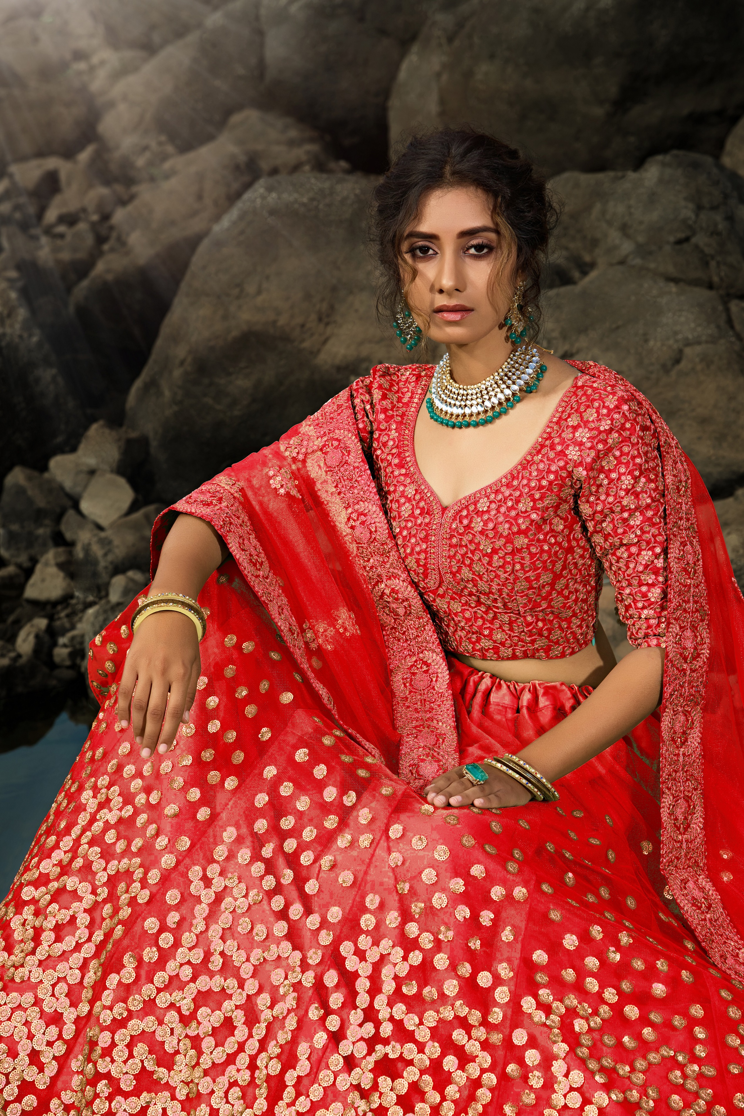 Elevate your ethnic look with this red net lehenga featuring sequience work work. Designed for festive occasions and celebrations, it offers a graceful flow and timeless appeal.Crafted from lightweight net fabric with a semi-stitched finish, this lehenga ensures comfort and easy customization. Dry clean recommended.