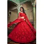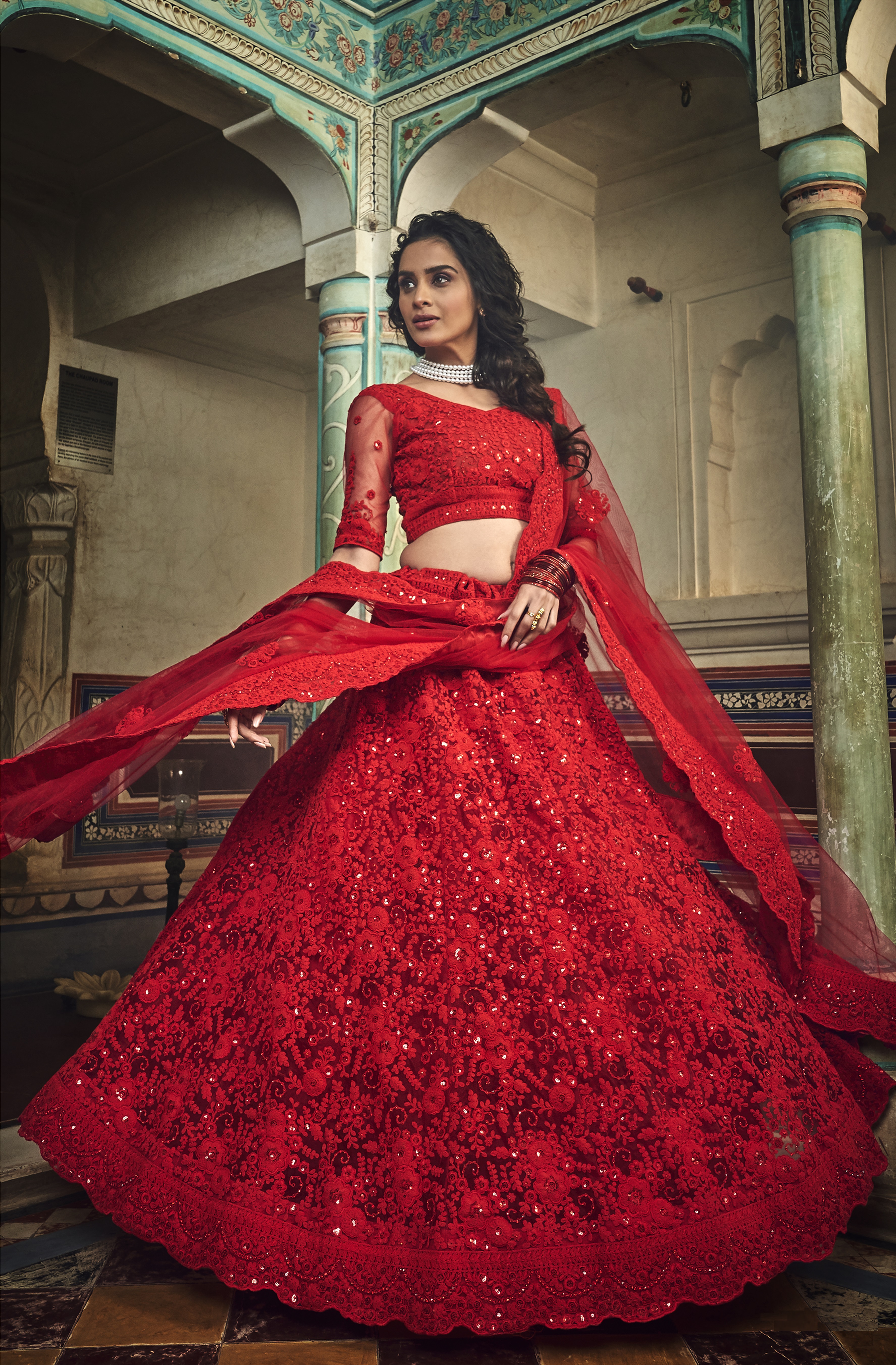 Elevate your ethnic look with this red net lehenga featuring thread embroidery work. Designed for festive occasions and celebrations, it offers a graceful flow and timeless appeal.Crafted from lightweight net fabric with a semi-stitched finish, this lehenga ensures comfort and easy customization. Dry clean recommended.